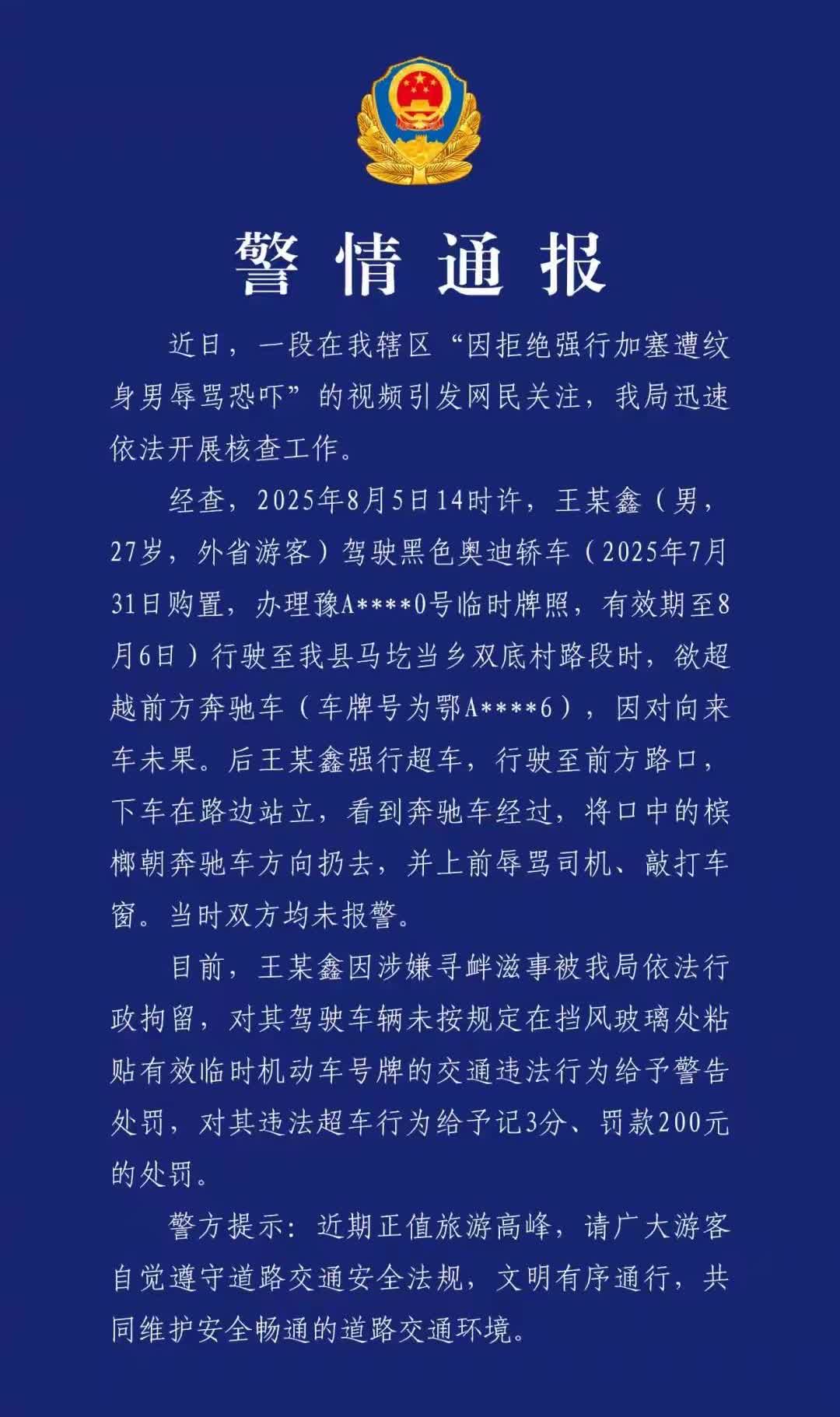 超车失败,再次强行超车! “晋城纹身男”脱衣亮纹身! 无牌奥迪车强行加塞