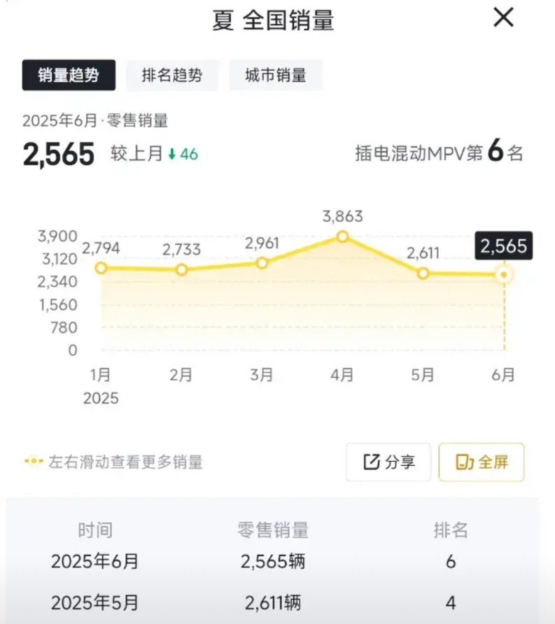 比亚迪又一款被市场抛弃的车, 夏为什么卖不动? 网友说比亚迪是再一次因为贪心把自己mpv的路作死了。上一次是想用一套四代dmi把市场价12万不到的宋max卖到16万,然后火速被市场教育。 这次又想通过五代系统打gL8价格,本身尺寸不够情况下为了支撑迷之自信的价格,硬塞两个航空座椅(不要航空座椅就是鬼才去买的丐中丐)好了,又被市场教育了。