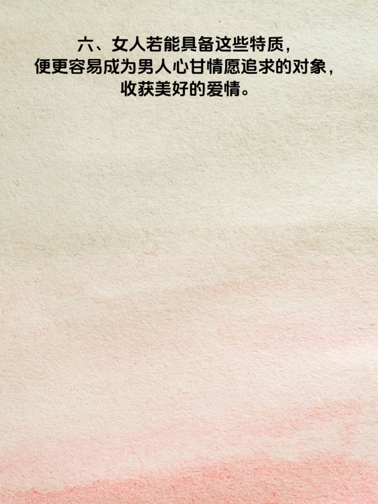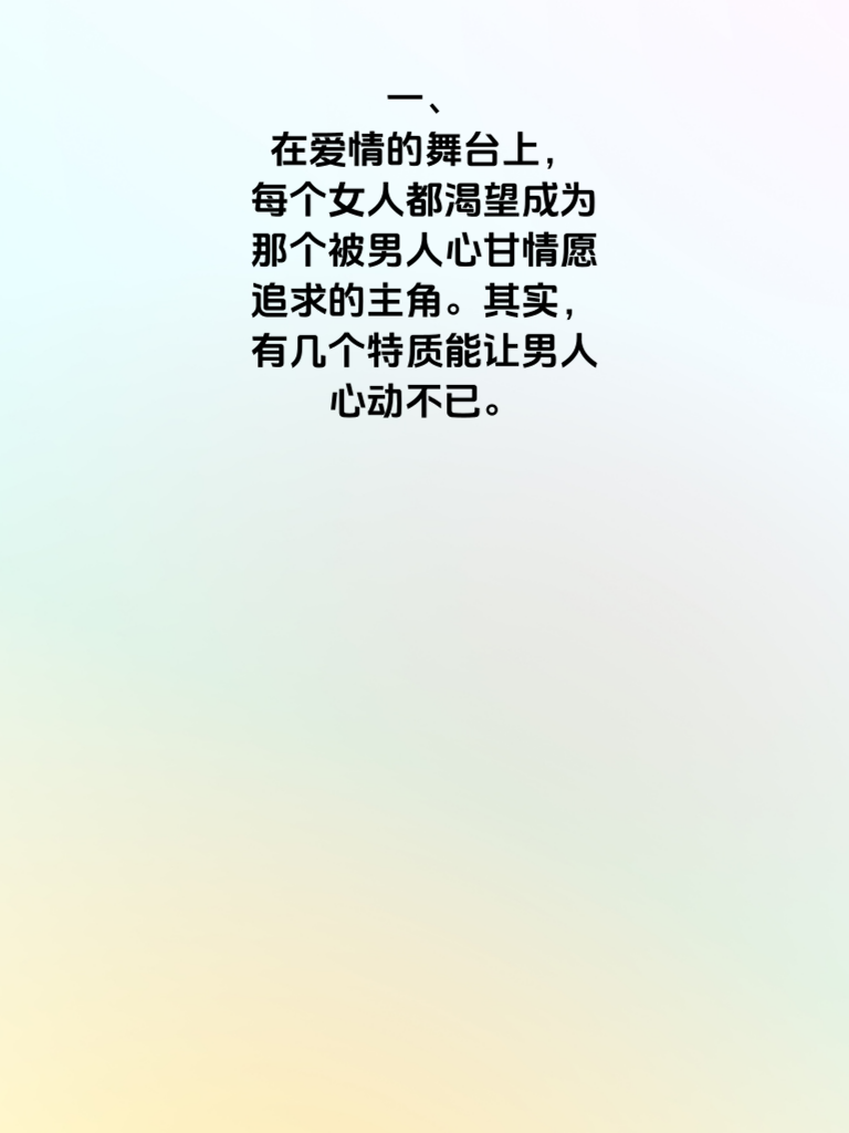 一、在爱情的舞台上,每个女人都渴望成为那个被男人心甘情愿追求的主角。其实,有几个特质能让男人心动不已。 二、首先,自信的女人散发着独特魅力。她们清楚自己的价值,不自卑不怯懦。自信的笑容、坚定的眼神,都在告诉男人:我值得被爱。这种气场会吸引男人主动靠近。 三、善良也是至关重要的特质。对他人怀有善意,懂得关心和体谅。在男人眼中,善良的女人内心柔软,能给予温暖与安慰,让他们想要守护。 四、拥有独立思想的女人同样迷人。她们有自己的见解和追求,不依附于男人。这种独立会激发男人的征服欲,促使他们努力追求,去了解这个特别的她。 五、再者,懂得适时示弱的女人很讨喜。偶尔展现出小脆弱,让男人有机会发挥保护欲。这会让男人觉得自己被需要,从而更积极地追求。 六、女人若能具备这些特质,便更容易成为男人心甘情愿追求的对象,收获美好的爱情。