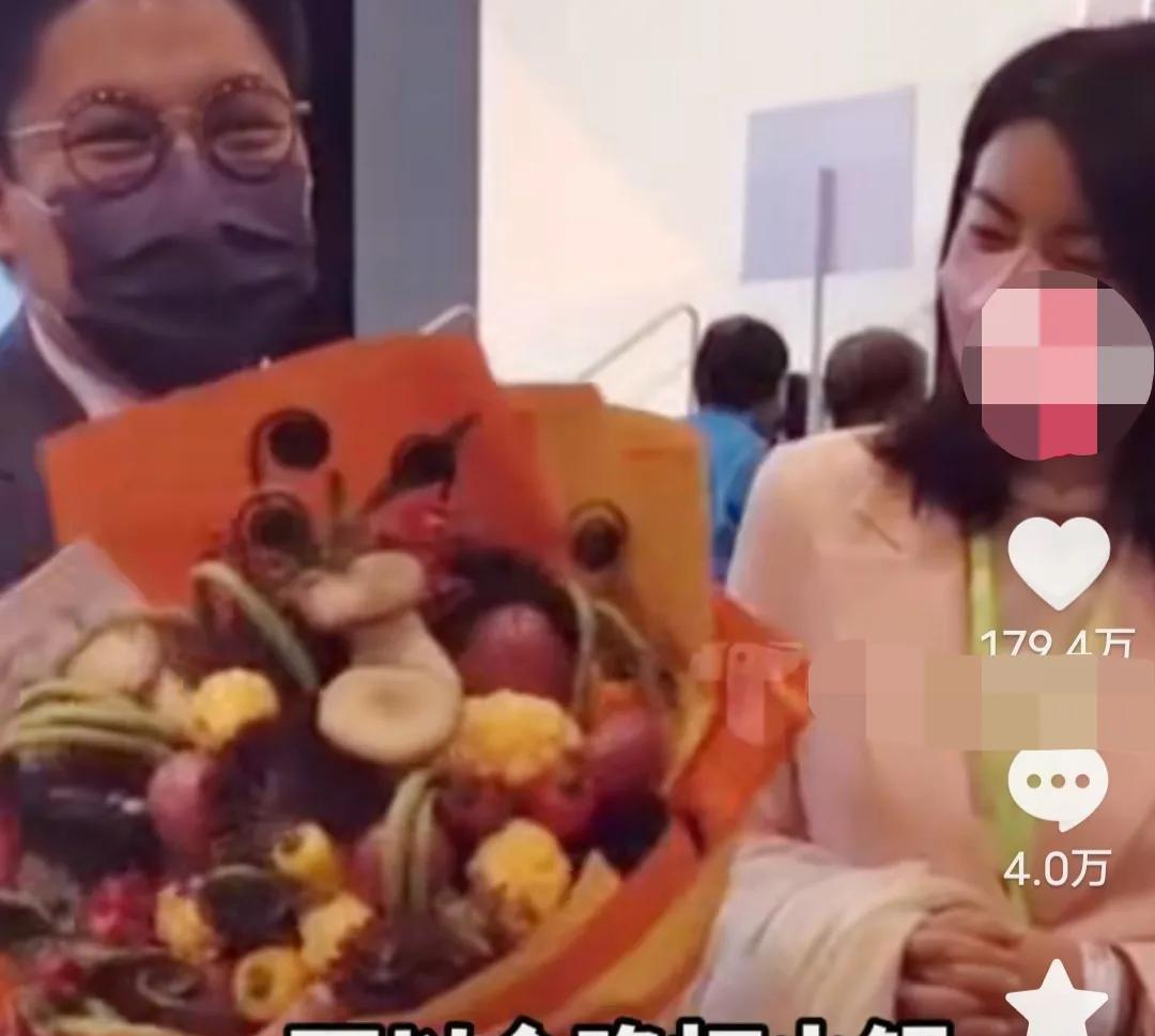 2021年,霍启刚当选香港立法议员,郭晶晶送蔬菜花。霍启刚开心:“今晚可以拿它做