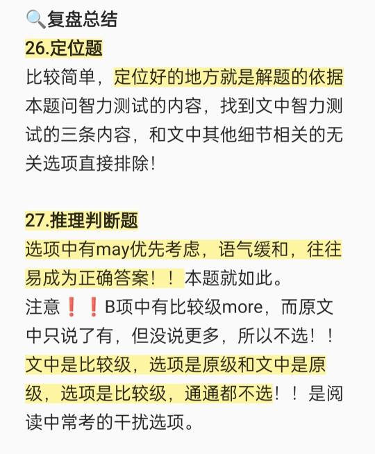 D项是考研阅读理解中的小墓碑选项,永远不可能成为正确答案!!更多小墓碑词总结看后图👉🏻