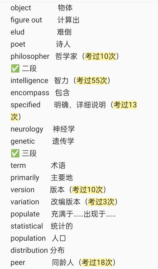 本题问智力测试的内容,找到文中智力测试的三条内容,和文中其他细节相关的无关选项直接排除!