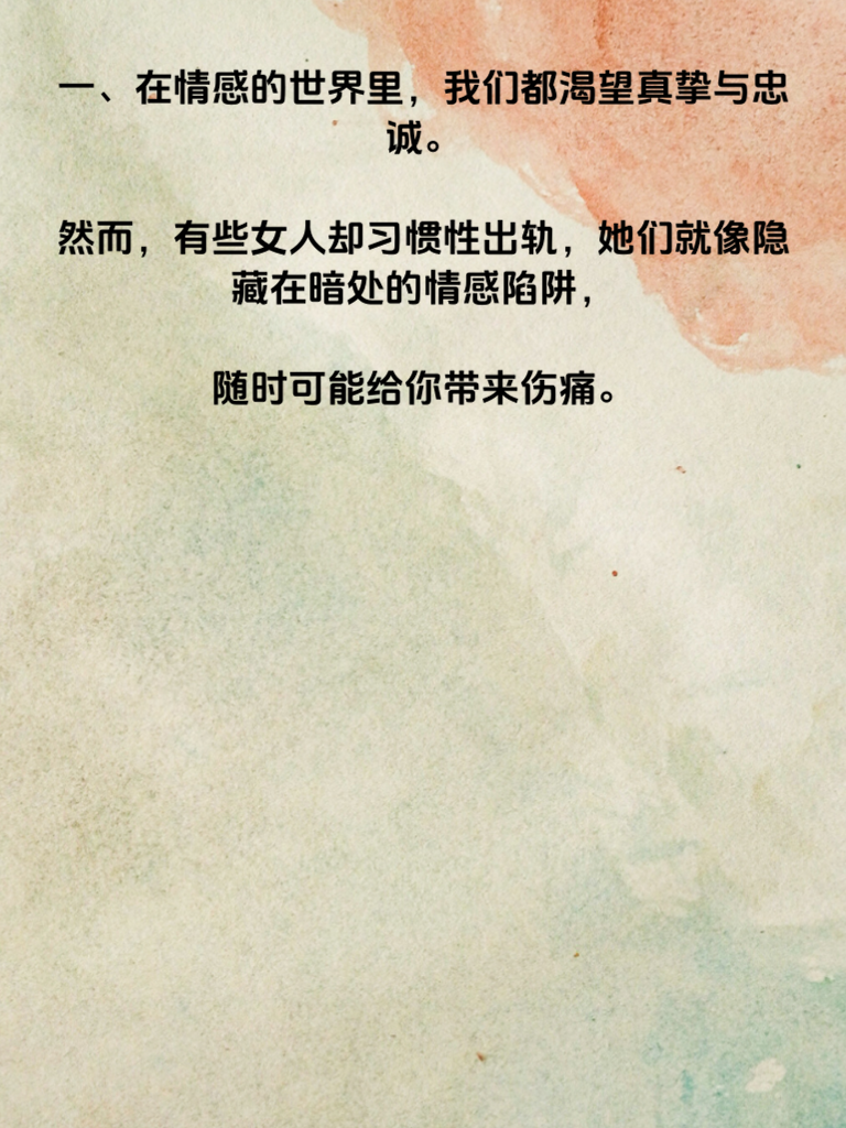 所谓习惯性出轨的女人就是天生骨子里不安分水性杨花的人,这种女人狗改不了吃屎