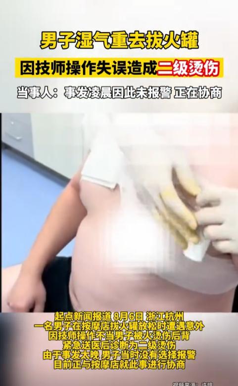 浙江,男子因湿气重去拔火罐,眼看拔满了后背,不料店员突然操作失误,将带酒精火苗的