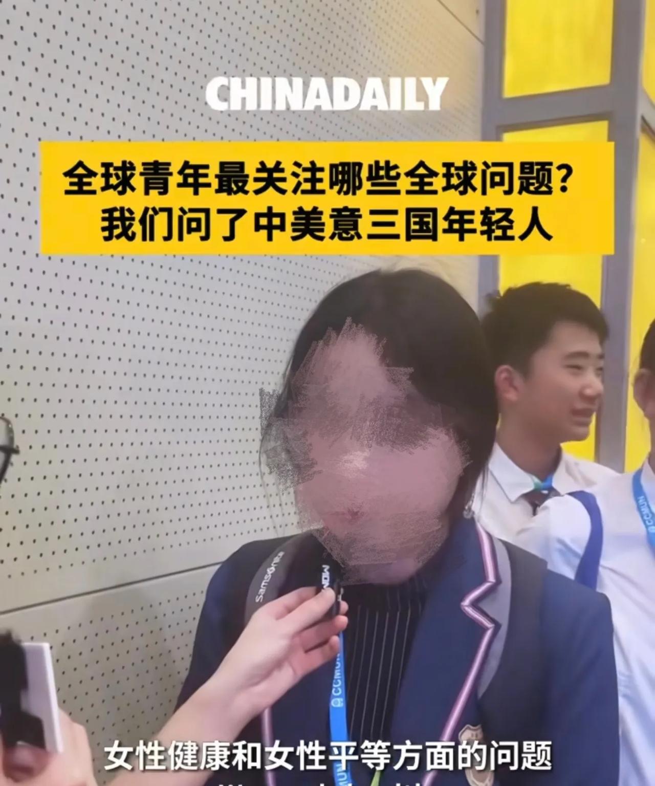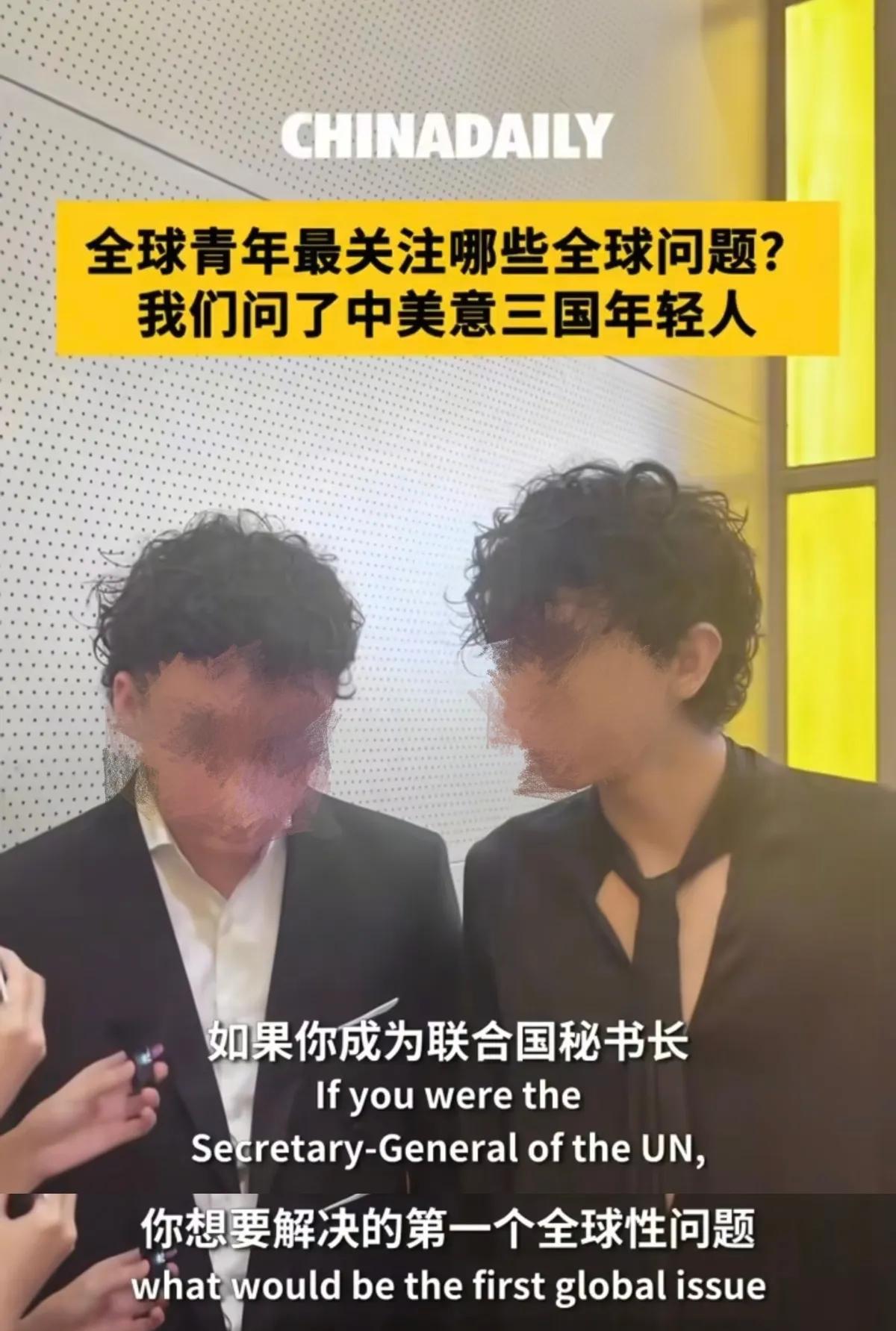 《中国日报网》随机采访前来参加模拟联合国大会的中美意三国学生,受访者全是00后,记者提了一个很有意思的问题:假如你成为联合国秘书长,你想要解决的第一个全球性问题会是什么?本次随机采访样本都很有代表性啊,我们一起来看看。 两位美国男学生表示自己比较关注战争难民与无家可归者,呼吁公众伸出援手帮助他人,颇有点儿“只要人人都献出一点爱,世界将变成美好的人间”那意思。这是联合国老议题了,理想很丰满,现实很骨感。 一位美国女学生强调要尽量化解人与人之间的敌意,让大家彼此之间更加友善,这同样属于老生常谈。 另一位美国女学生则表示要通过外交与妥协来缓解国际冲突,尽量减少冲突对于普通民众的影响。这个想法有点儿意思了,毕竟中美作为当今世界两大强国,彼此都在依靠自身实力通过外交手段来对国际秩序施加影响。 这位意大利男学生应该是位技术控,他认为技术迭代可以影响并改善世界秩序。我猜他可能是指目前正在引发全球重视的AI技术,未来结果如何,我们拭目以待。 另外一位妆容稍显夸张的意大利女学生则认为当务之急是尽快叫停战争,因为战争令人倍感压力。这也不难理解,现在整个欧洲都非常焦虑。 还有一位意大利女学生表示当下关键是要增进各个社会议题中的国际合作,我感觉她的言下之意应该是要以此为切入口来重新塑造国际共识。 下面让我们来看看中国学生有什么高见,中国男同学表示当务之急是改善冲突地区女性的卫生与医疗权益保障问题。这……那冲突地区的男性和孩子呢? 这位中国女学生言简意赅表示自己要解决女性健康和女性平等相关问题…… 另一位中国女学生把议题重新拉向战争,她表示二战以后战争并没有完全停止,战争给人民带来了深重灾难。与前两位受访者比起来,我个人认为这个回答格局明显提升不少。 这就比较有意思了,在《中国日报网》发布的随机采访视频中美国和意大利的学生都在基于人类视角去谈国际问题,但三位中国学生中却有两位选择以女性问题为切入点。我们到底是领先版本还是落后版本?其实女权在欧美早就已经是上上个版本了,就连性少数群体议题都已经过时了,闹麻了之后正在迎来回潮,现在反而没啥人提了。 如果让我评价这三位中国学生表现的话,我会更加支持像最后一位女学生那样谈论并思考战争影响的中国年轻人在未来去挑战参与国际事务。前两位并不看好,毕竟我很难想象大家都在讨论现代战争践行外交价值时,突然有人站出来大谈保护冲突地区女性卫生与女性健康平等,这未免有点儿太尴尬了……