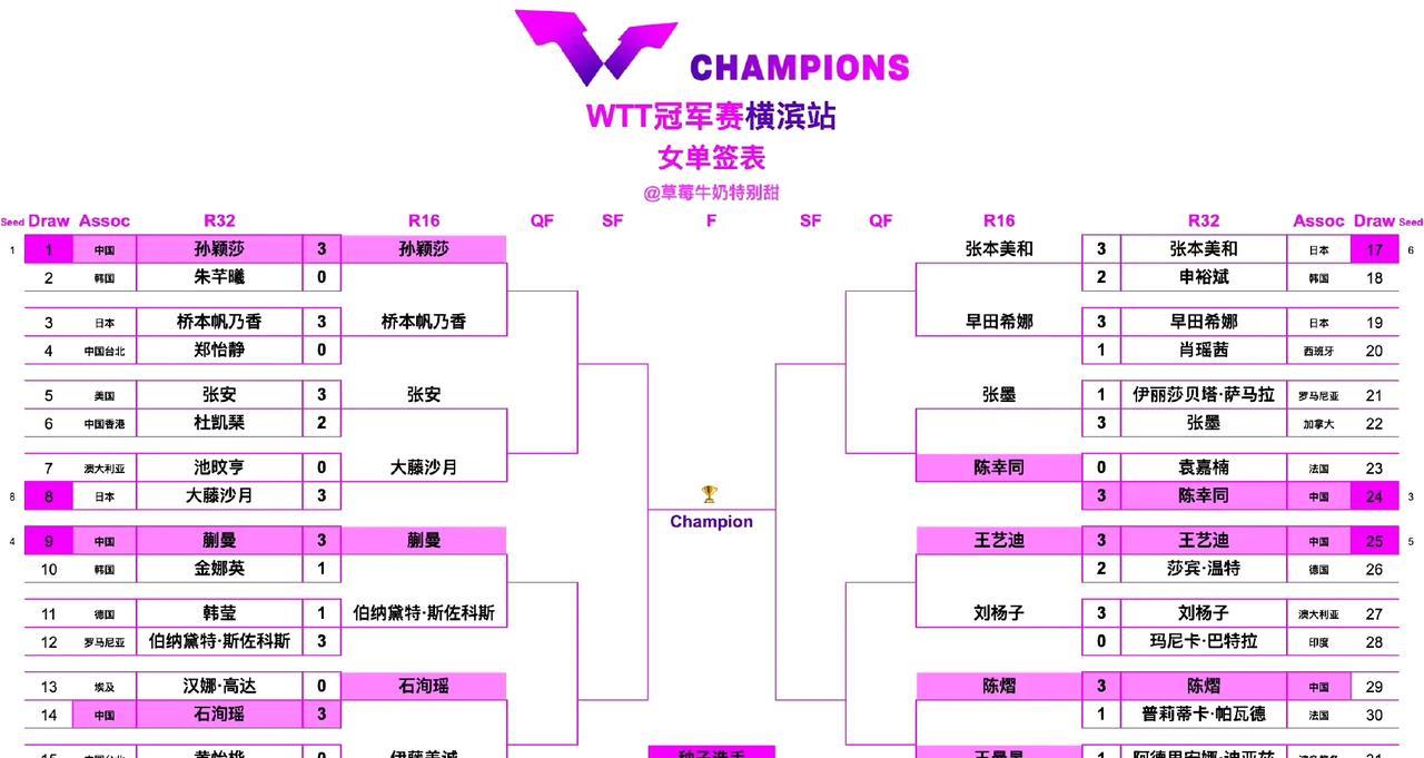 女单16强全部产生,1/8决赛名单公布! #头号创作者激励计划##WTT冠军赛横