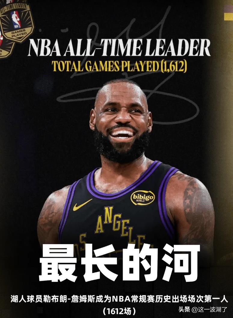 本场比赛湖人老大勒布朗詹姆斯再一次的创下了生涯里程碑,NBA常规赛历史出场次数来到1612场,成为历史第一人!