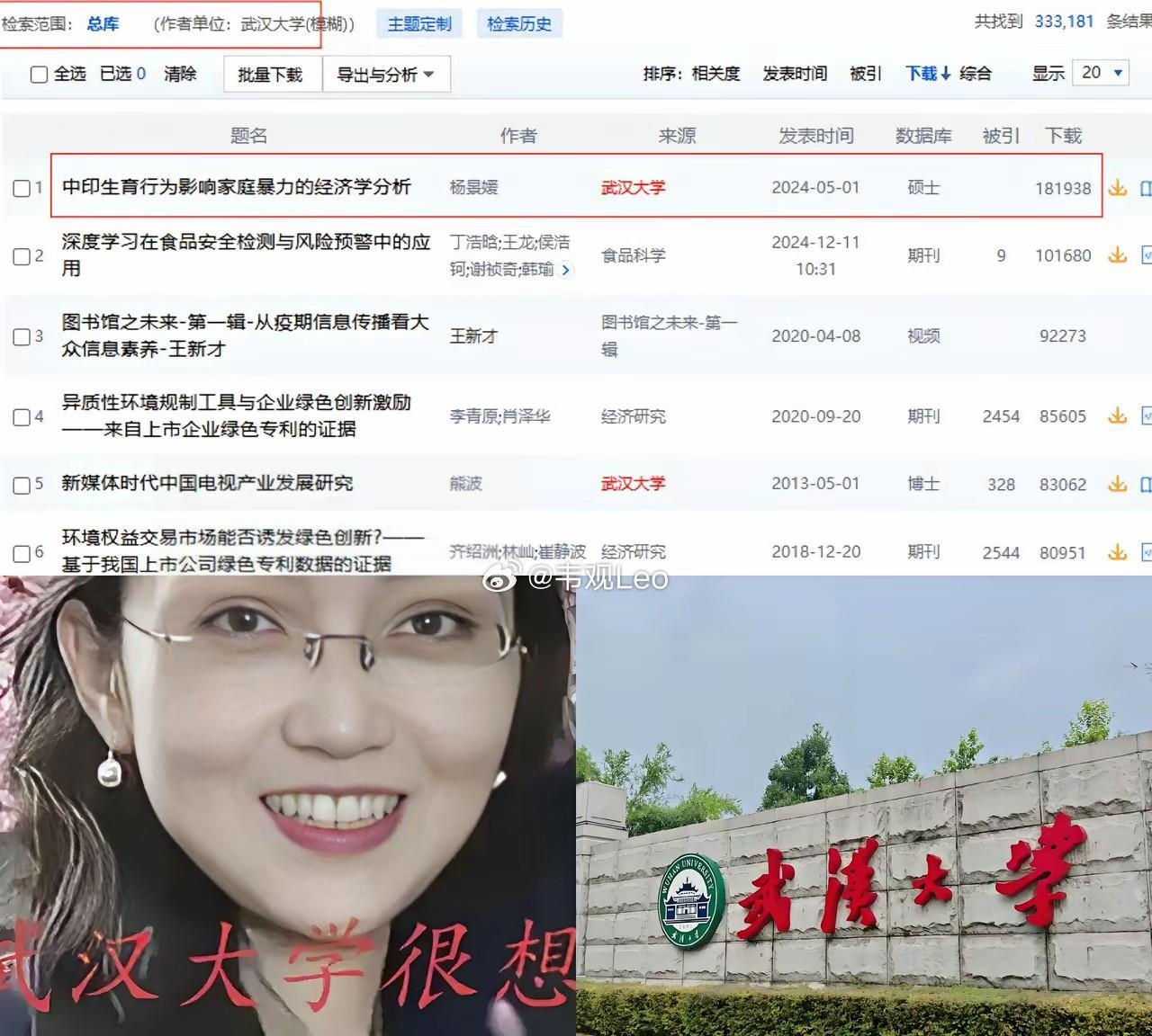 杨景媛的论文目前在知网的下载量达到了20万,登顶武汉大学所有上网论文的下载量第一名。 如果杨同学选择税后销售额中提取相应版税,依据下载量,硕士学位论文按9%支付,大约可分到12万。如果过几天她美滋滋晒出报酬将是绝杀,这也可能是世界学术史上最大的讽刺。