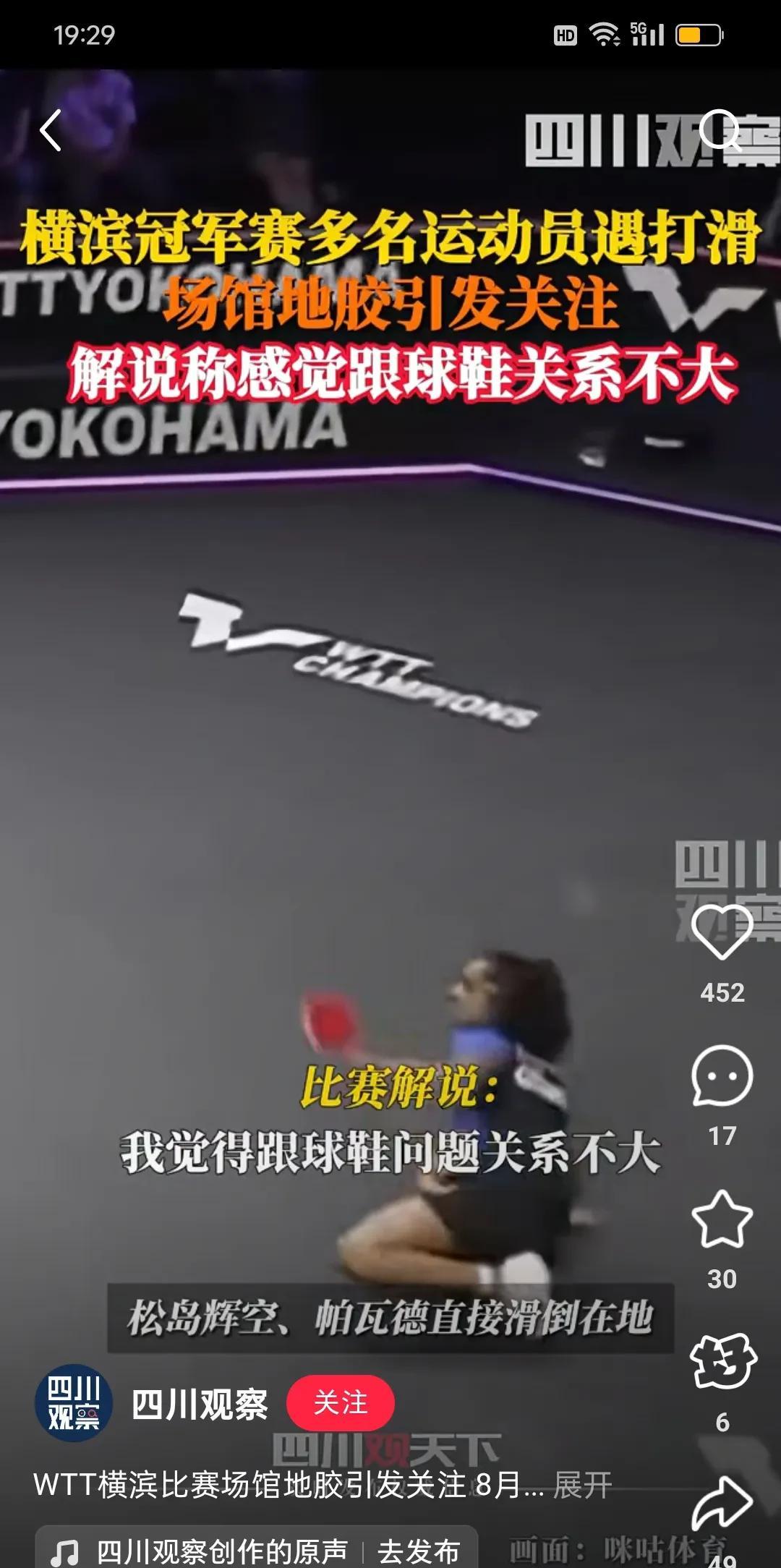 WTT横滨冠军赛正在举行中,但比赛中多名运动员因地板滑差点摔倒! wtt