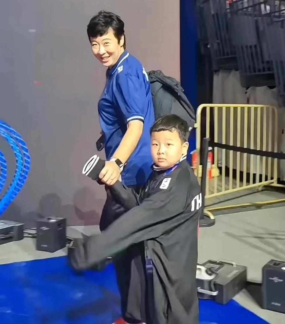 中国女排前队长冯坤带儿子亮相排球赛场,母子相似的容貌成焦点!儿子遗传了母亲的卷发