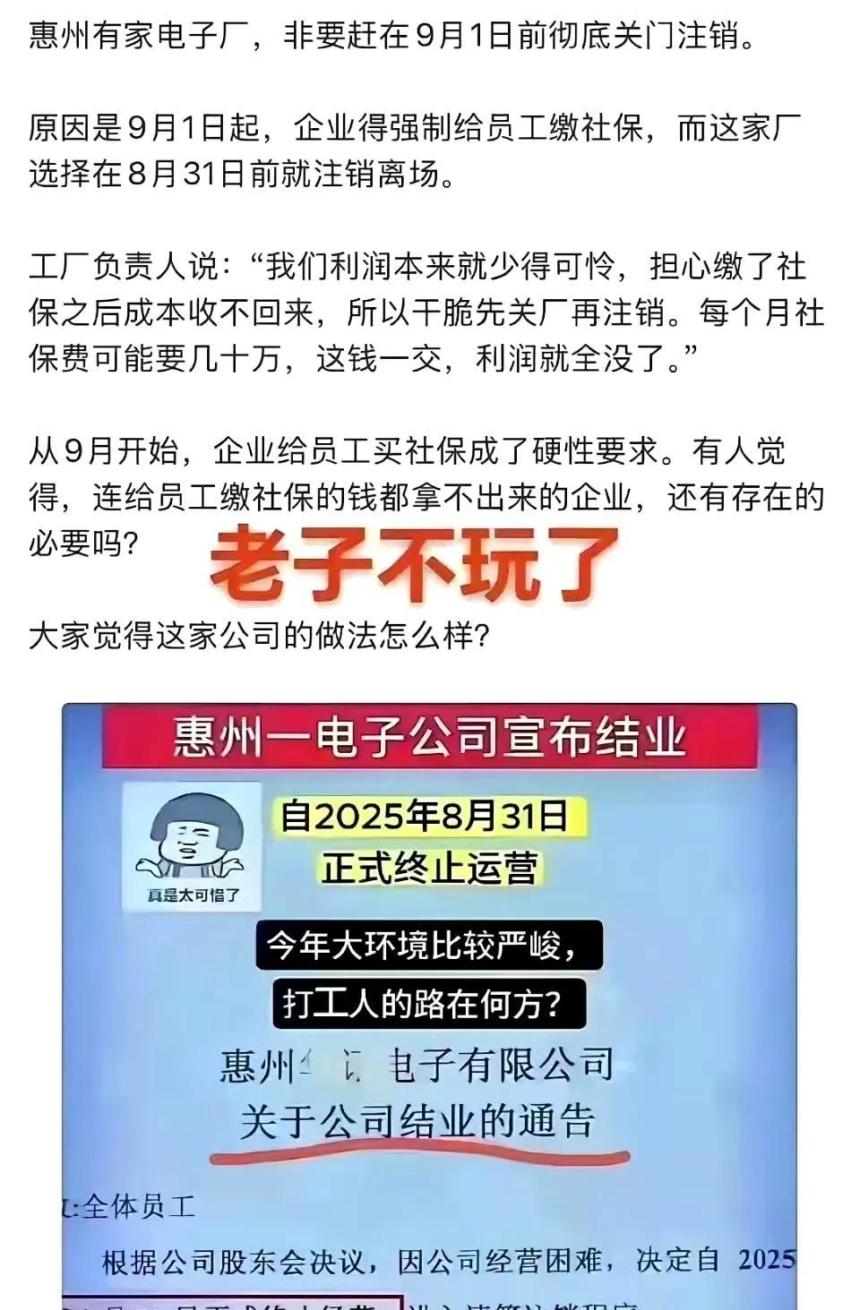 那就别玩咯,靠剥削劳动者的社保钱来支撑的厂子,有脸活下去?