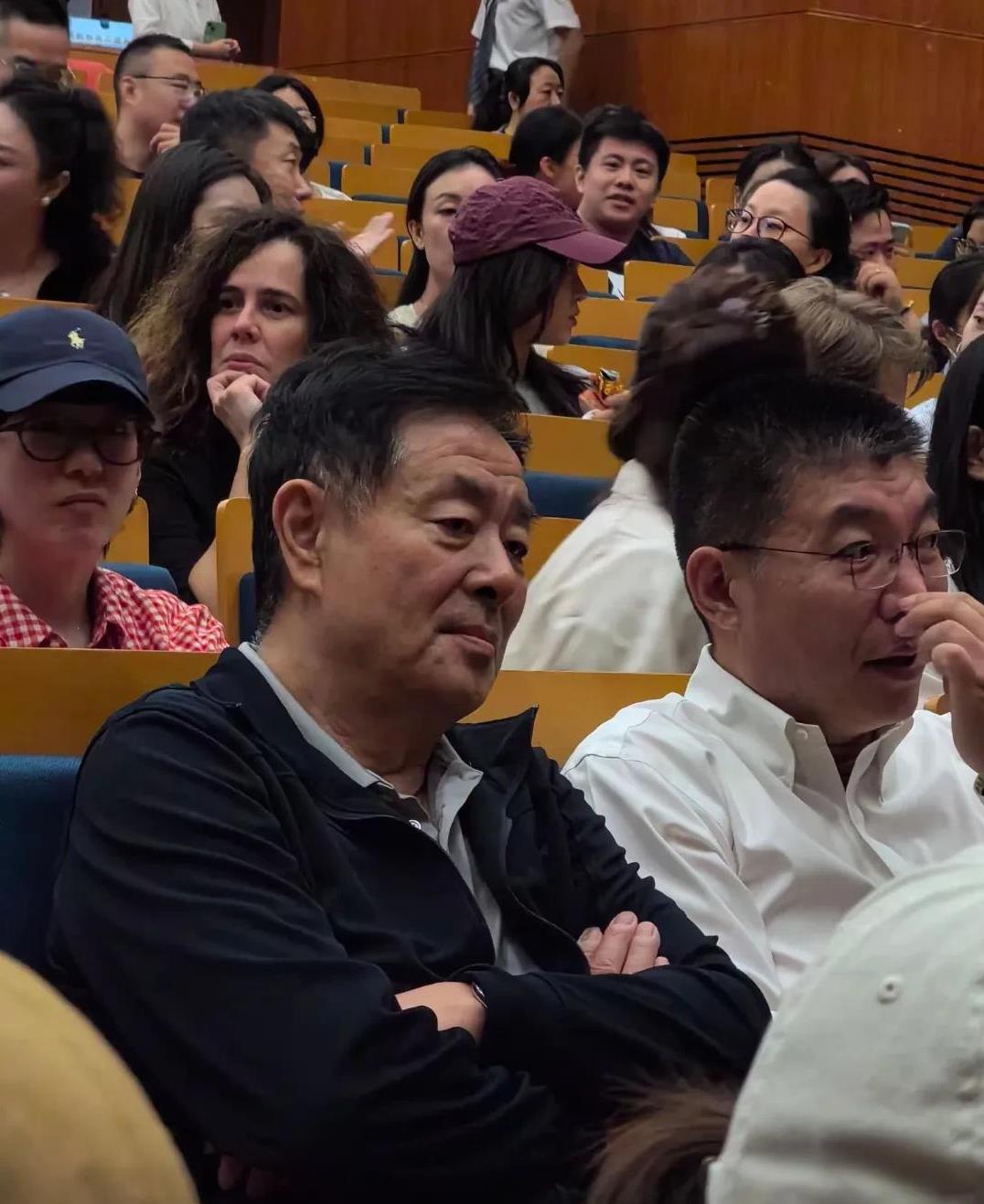 靳东、濮存昕、中戏院长郝戎观看俄罗斯话剧《海鸥》,前两人看的很专注。 离开的时候
