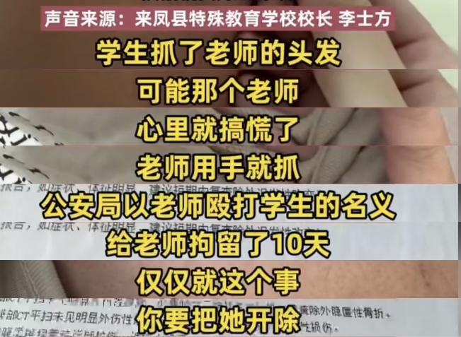 湖北恩施,特教老师被17岁自闭症男学生抓住头发后,情急反击被拘10日,出来后学生