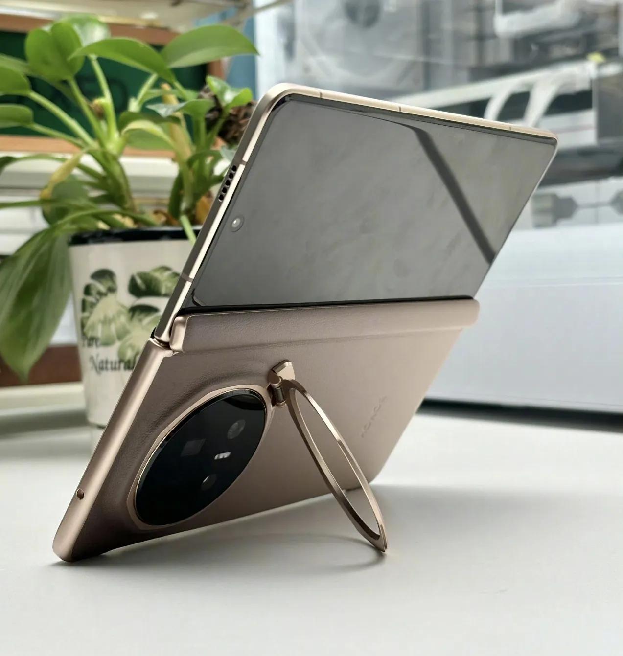 荣耀Magic V5自带的手机壳真的绝了 摄影头位置那个圈圈掰出来就能当手机架用,最近沉迷看短剧,全靠它解放双手了!