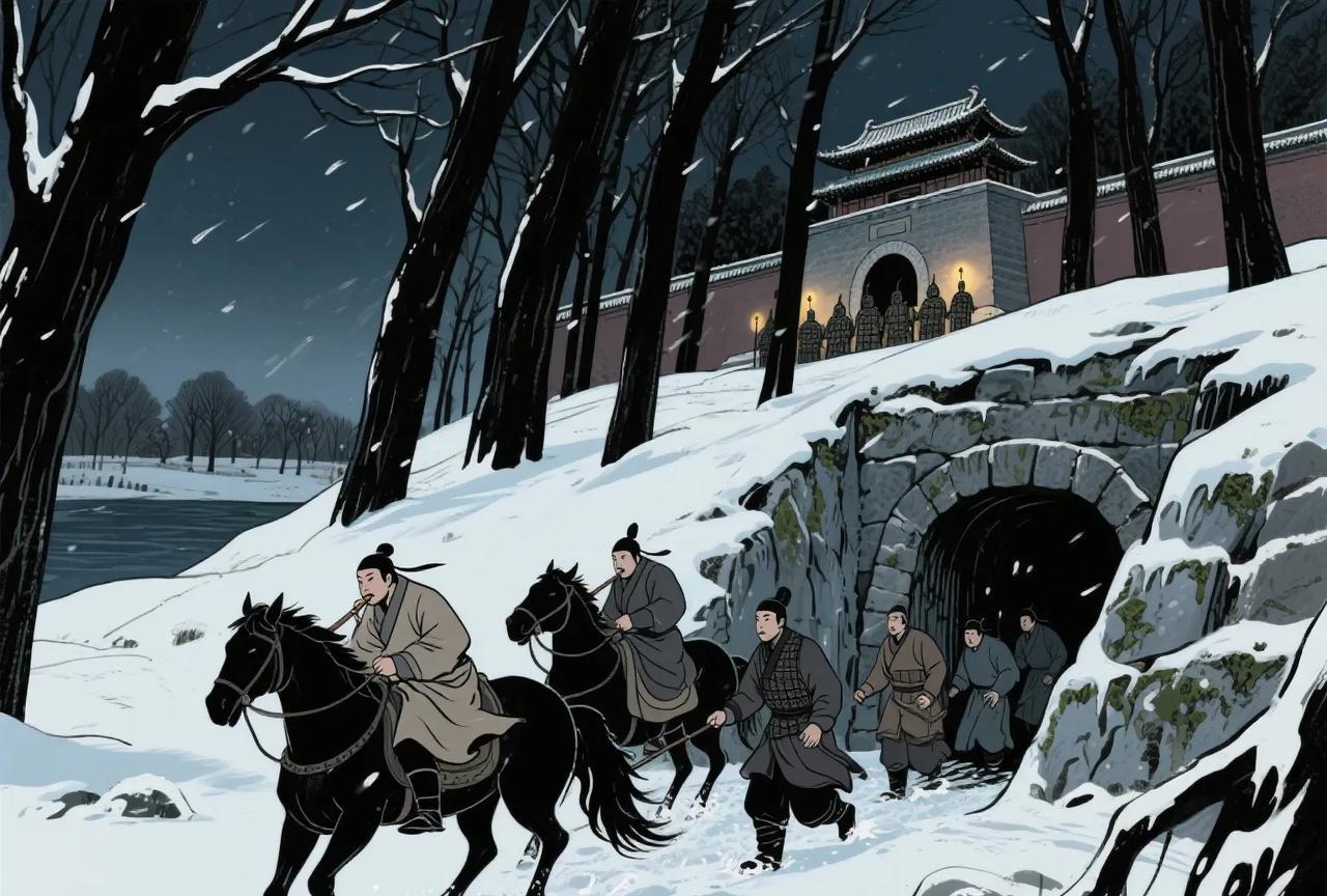 崇祯二年,毛文龙被斩杀,其子毛承斗没找袁崇焕报仇,而是夜里摸进清营,把努尔哈赤的棺材给盗走了。 毛文龙的头颅在朔风中摇荡,怒目圆睁,一个裹着破旧羊皮袄的少年身影,在风雪中僵立如石,只有那双眼睛在积雪映衬下,燃着两簇幽暗的火。 “爹……”毛承斗的牙关在寒风中咯咯作响,却始终未再吐一字。他默默转身,身影踉跄地消逝于漫天风雪深处。 皮岛总兵府,早已物是人非。毛承斗推门而入,只觉寒气彻骨,昔日父亲召集将领、军书旁午的厅堂,如今唯有尘埃在透过破窗的光柱里翻飞。他默然走向内室,轻轻拂去父亲甲胄上的厚尘。指腹触到冰冷铁甲时,竟似有灼痛之感,仿佛那铁衣深处还熔铸着父亲滚烫的体温与未尽之志。 “少将军!”一个嘶哑的声音打破死寂。毛承斗回头,是昔日父亲亲兵队长陈平,他身后还跟着十余位形容枯槁却眼神如铁的旧部。 陈平单膝跪地,声音哽咽:“将军含冤,我等……死不瞑目!”众人随之跪倒,头颅深埋,积雪般的白发与冻得发紫的额角相触。堂中一片死寂,唯闻粗重的呼吸声在空旷里撞击,如困兽低咆。 毛承斗的目光缓缓扫过一张张刻满风霜与忠愤的脸,最终落回父亲冰冷的甲胄上。他深吸一口凛冽寒气,声音异常沉静:“取不得皇太极头颅,便取他祖宗的棺椁!让天下看看,我毛家,不是任人宰割的羔羊!”每一个字,都像从冻土里艰难掘出的冰棱,寒光凛冽。 沈阳城外,浑河北岸的树林在夜色与雪光中黑黢黢一片。毛承斗与陈平等十余人,口衔枚,蹄裹布,如同雪原上悄无声息的鬼魅,向那重兵拱卫的福陵潜行。朔风如刀,刮过裸露的皮肤,瞬间带走温度,留下刺骨的麻木。 福陵地宫入口处,清军重甲层层守卫,灯火通明。他们只能绕至后山,凭借陈平早年探知的一条狭窄暗道潜入。暗道内阴冷潮湿,石壁覆满滑腻的苔藓与冰霜,每一步都如履薄冰。黑暗中,众人屏息摸索,只闻彼此压抑的心跳和冰屑簌簌剥落的微响。 地宫深处,努尔哈赤的巨大金丝楠木棺椁赫然在目,在幽微的长明灯火映照下,阴沉木泛着沉重而诡异的光泽。棺木巨大无比,毛承斗将粗绳绕过棺底,绳索勒进肩膊皮肉,冰寒刺骨。他与陈平低喝一声“起!”,那沉重如山的棺椁竟在十数人肩背上微微离地。众人咬紧牙关,额头青筋暴起,汗珠尚未滚落便已凝成冰珠,在昏暗光线下闪着微光。他们背负着这万钧重担,沿着来路,在狭窄湿滑的暗道中一寸寸向上挪移,肩头的绳索渐渐被鲜血染红、冻结,每一步踏出,都在身后留下暗红的冰痕。 终于挪至暗道出口,寒风裹着雪片扑面而来。众人不及喘息,远处骤然响起尖锐的呼哨与犬吠! “鞑子巡哨!快!”陈平嘶声低吼。清军巡逻骑兵的火把光点已如流萤般快速聚拢。 毛承斗肩扛重索,厉声下令:“陈平,带三人断后!其余人,跟我走!”他最后瞥了一眼陈平。那张被风霜蚀刻的脸上,唯有一片平静的决绝,如同投入深潭的石子,不起半分涟漪。 “少将军保重!”陈平的声音淹没在骤然爆发的喊杀与兵刃撞击声中。毛承斗不再回头,与剩余弟兄扛起棺椁,在无边的雪夜里向着南方海岸的方向亡命狂奔。身后,金铁交鸣之声、垂死的怒吼,如同惊涛拍岸,一声声撞击着他的背脊,越来越远,最终被呼啸的北风彻底撕裂、吞噬。 渤海怒涛如墨,拍打着冰冷的礁石。毛承斗与仅存的几名部下,肩背早已血肉模糊,将努尔哈赤的棺椁牢牢固定在一条破旧海船的舱底。他立于船头,最后回望了一眼风雪弥漫的辽东海岸线。陈平他们以血肉为障的喊杀声似乎还在耳畔激荡,却又被风涛无情卷走。 船帆鼓满,破浪向南。小船在漆黑的怒涛间起伏如一叶。毛承斗紧握船舷,骨节在凛冽海风中泛出青白。他目光越过惊涛,投向更南的方向,投向那个父亲为之效忠至死、却最终被冤杀的遥远庙堂。父亲的甲胄冰冷地倚在身侧,海浪声如同无数魂灵在深渊中发出的呜咽与诘问。 海天茫茫,前路亦如这墨色波涛般深不可测。这一副盗来的帝王棺椁,这一身染血的父亲遗甲,究竟能向这混沌世间昭示什么?又能向那煌煌史册,叩问出怎样一声沉重而悲怆的回响?无人应答。唯有不息的浪涛,永无休止地拍打着船舷,发出亘古的、空洞的轰鸣。