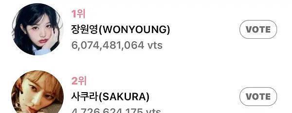 KWDA的女solo投票结果已出 张元英第一、宫脇咲良第二