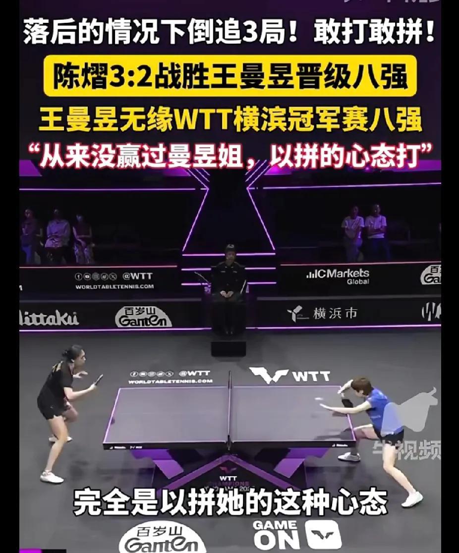 #头号创作者激励计划#陈熠逆转王曼昱!小将心态太绝了 WTT横滨冠军赛女单1/8决赛,陈熠3:2逆转王曼昱晋级八强!赛后采访,陈熠直言 “一点心理包袱都没有,就抱着拼曼昱姐的心态去打” 。 先丢两局又怎样?小将彻底放下负担,每一拍都全力去拼,连追三局实现大逆转 。这种无畏的冲劲,是国乒新生代的底气!王曼昱虽遗憾止步,但国乒内部 “后浪推前浪” 的竞争,正推着队伍越走越强,国乒未来可期~ #陈熠逆转# #横滨冠军赛# #国乒新生代#
