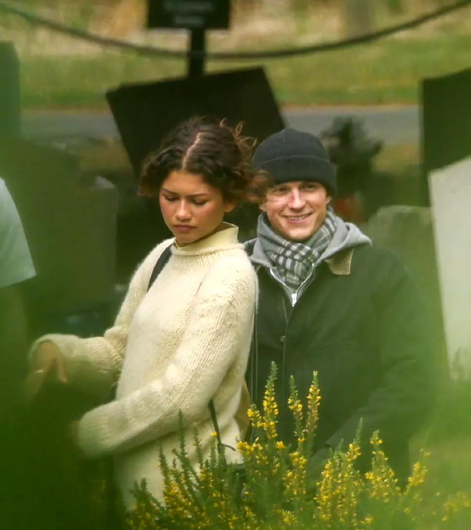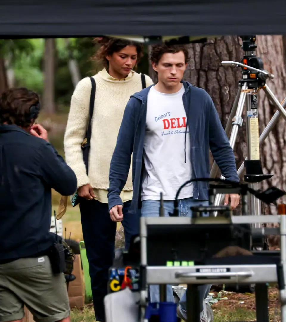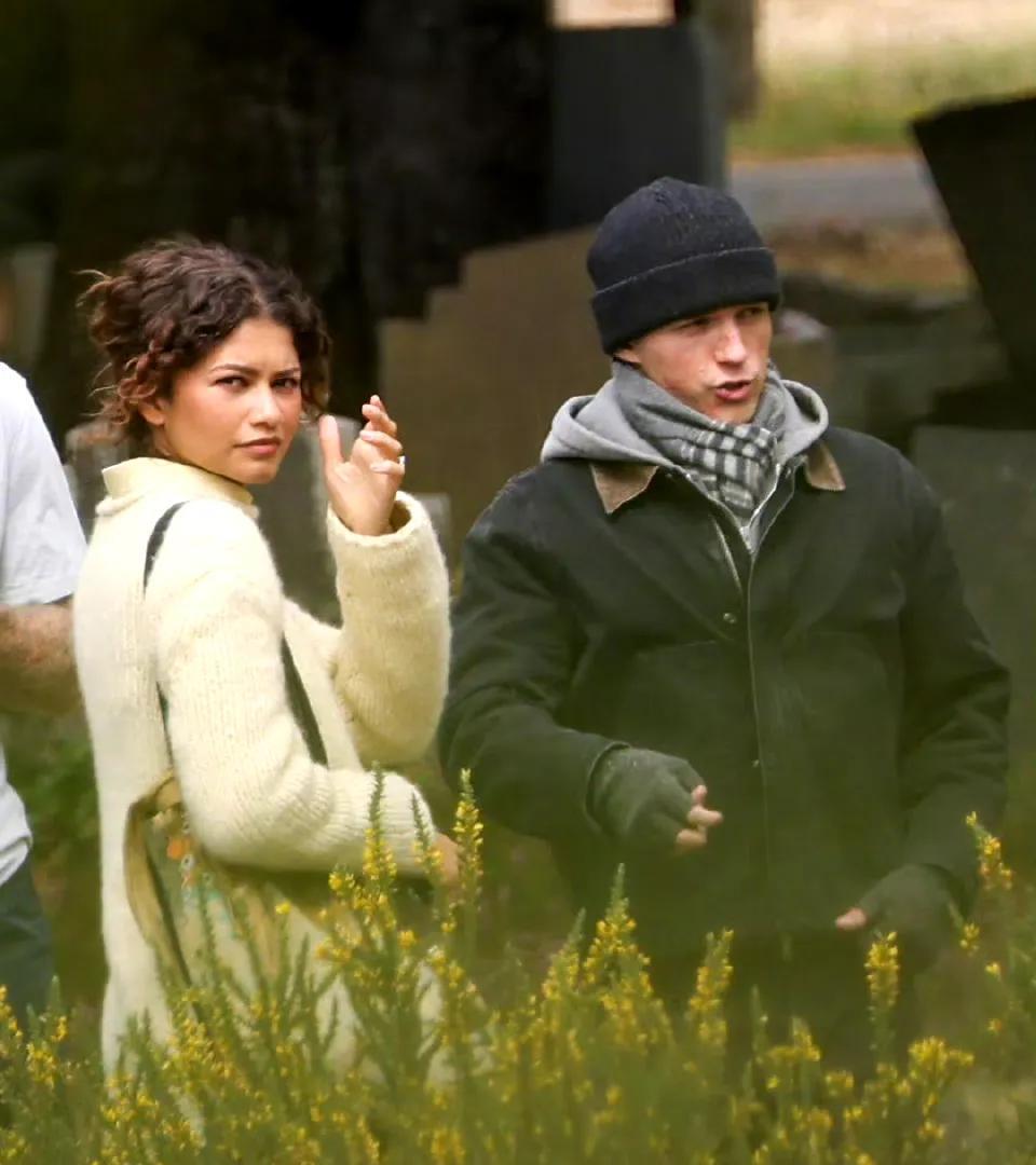 赞达亚现身伦敦片场探班未婚夫汤姆·赫兰德拍摄《蜘蛛侠:全新一天》。