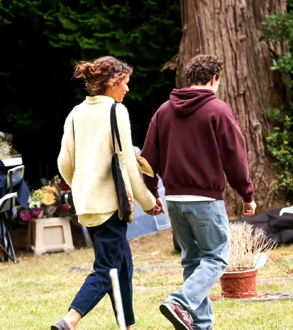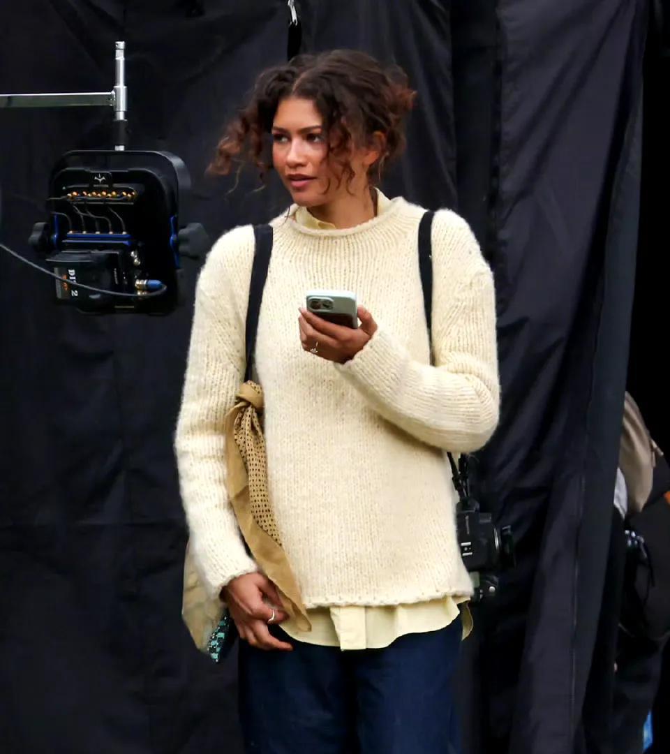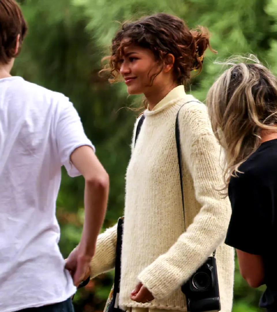 赞达亚现身伦敦片场探班未婚夫汤姆·赫兰德拍摄《蜘蛛侠:全新一天》。