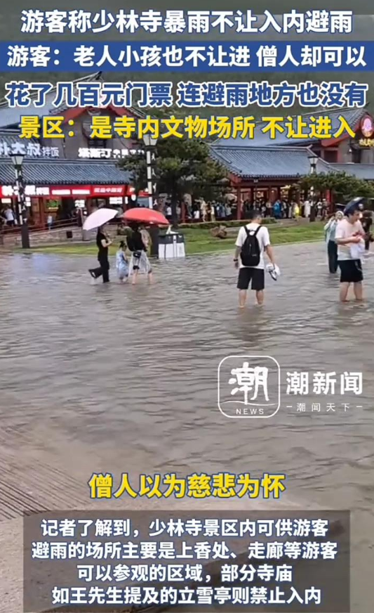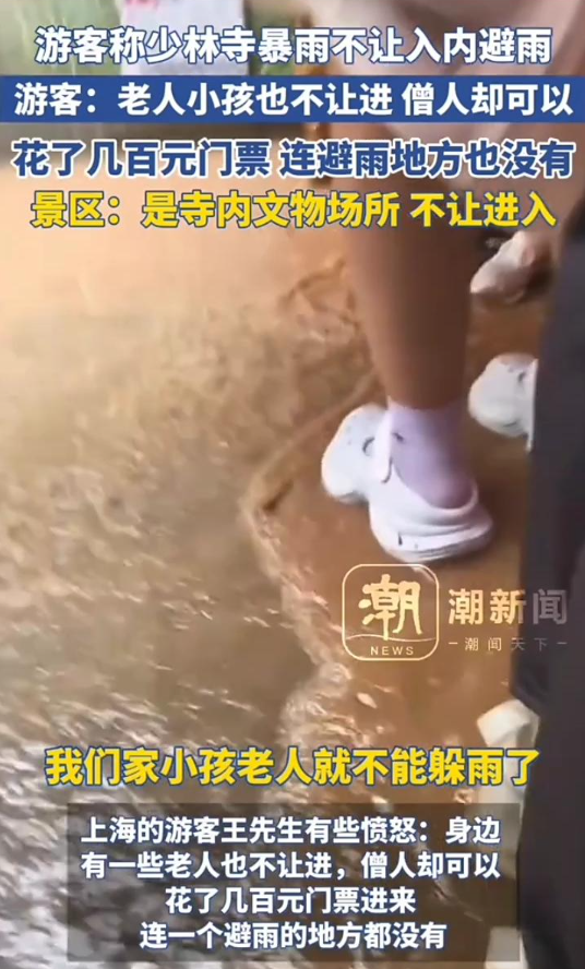 好家伙!近日据媒体报道,游客称少林寺暴雨不让入内避雨!