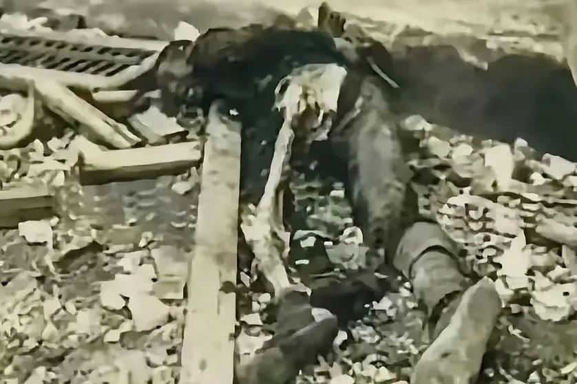 抗日战争时期,一名中国士兵被日本鬼子反绑双手,左腿的肉被残忍割光。冰冷的刀锋划过