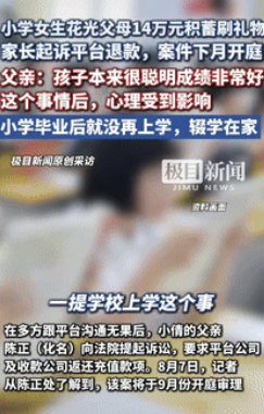 “胆子不是一般大!”河北保定,一小学女孩因在班级受到同学冷落,就想到虚拟世界寻求安慰,短短5个月,女孩就在交友软件打赏了14万元,耗尽家中积蓄,父母得知后,联系平台退钱,没想到,竟遭到对方各种推脱,气的女孩父亲将其告上法庭!   据极目新闻8月7日消息,女孩在校的成绩非常好,可她却感到格外孤寂,因为没人愿意和她做朋友,每次看到班里三两成群的人,她就感到格外羡慕。   为摆脱现实的烦恼,女孩开始看直播,隔着屏幕谁都不认识谁,只要说话就有人搭腔,尤其是那些刷礼物的人,主播捧着夸,弹幕上和她交流的人也多。   在直播间,女孩找到了归属感,线上那群人给了她满满的情绪价值,钱刷的越多,众人就越兴奋,女孩不知道钱有多难挣,刷完就继续充值,直到被父亲发现。   父母每月挣的钱并不多,只要工厂发了工资,两人就把钱存在同张银行卡,就在父亲缴纳水费时,发现连几十块都充不上,他这才去看银行卡余额,屏幕显示的数字让他大吃一惊。   只有十几块钱,父亲查看账单流水,发现钱几乎都进了同个平台的口袋,父亲斥责了女儿,可当务之急不是吵孩子的时候,而是怎么把这笔钱给拿回来。   女儿因为这事越发沉默寡言,父亲知道自己没看管好孩子,但他希望平台多少能退回来点,但平台很坚决一分不退,父亲决定起诉,他势必要讨回公道。   对于这件事情,大家有什么看法?