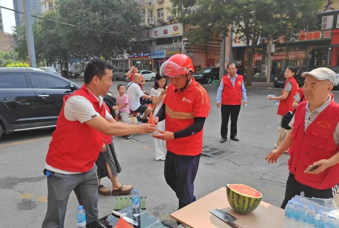 最近,在石家庄桥西区大经街上经常可以看到一伙身穿红色志愿者马甲的志愿者们在大街上穿梭,他们将矿泉水、冰糕、西瓜等消暑饮品和食品,免费递给交警、环卫工、外卖小哥等户外劳动工作者,在炎炎夏日高温天气下给他们送上清凉和关爱。 这个活动是由石家庄一家人志愿者团队发起的“爱心冰柜”送清凉活动,目前在石家庄大经街上已经有两个“爱心冰柜”网点。在这里,环卫工人、外卖小哥、快递员等户外工作者以及外地来石游客可免费取用“爱心冰柜”中的物品解暑降温。 石家庄“一家人”志愿者团队负责人温德军介绍,“爱心冰柜”活动将持续整个酷暑,主要是是为高温下的劳动者送去清凉,同时也欢迎全国各地的游客到此打卡,免费领取“清凉”。