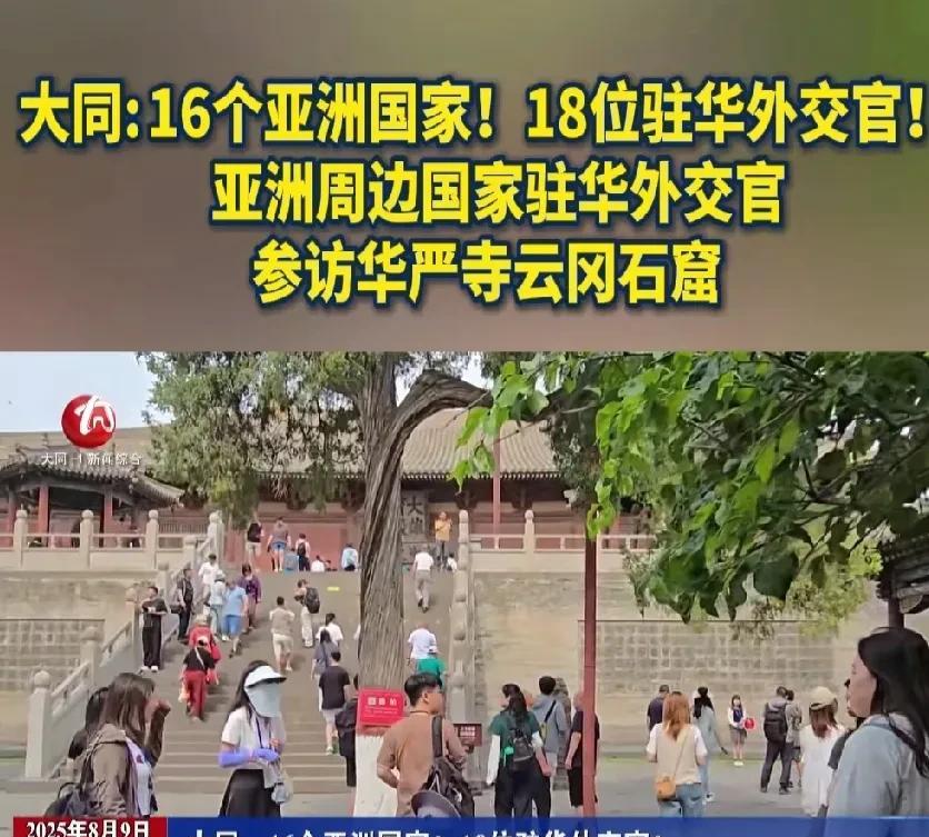 大同你有“何德何能”竟然引来16个亚洲国家,18位驻华外交官来“拜访你”! 大同你的转型真的成功了。大同的转型从曾经以煤为主的“煤都”转变为以旅游为主的旅游城市,引来了周边16个亚洲国家和18位外交官非常大的好奇。今天他们来到大同就是要看看这个城市,究竟有什么样的魅力这么吸引人。 典型的就是他们来到了具有987年历史的华严寺,这个当之无愧的“辽金艺术博物馆”真的太精美了,让他们都张大嘴了,这历史比故宫都早400年呀。而那个更让他们望尘莫及的具有1500年历史的世界三大雕塑艺术宝库、世界文化遗产云冈石窟,更是让他们惊叹道“大同真的大不同啊”。