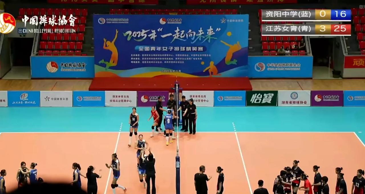 江苏女青3-0资阳中学晋级郴州邀请赛决赛,老帅沈富麟在比赛结束后依然在现场指导施
