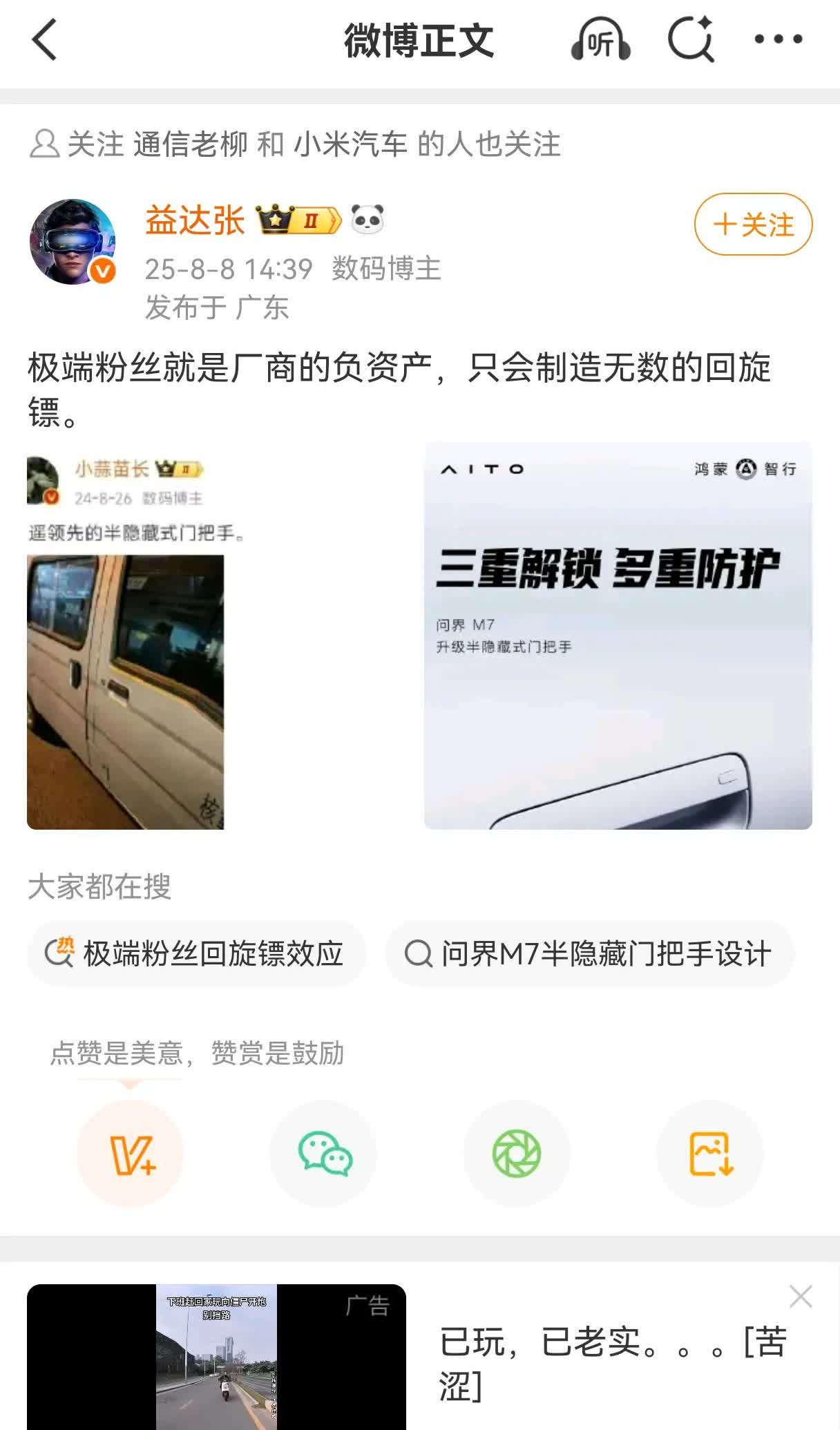 KML向全新问界M7三重解锁多重防护的门把手全军出击了。 只是人家问界M7的门把手可比你们家的su7纯电子式的门把手安全多了,有那个时间在那阴阳,还不如督促一下小米,把纯电的门把手升级成多重解锁模式,提高一下安全性。