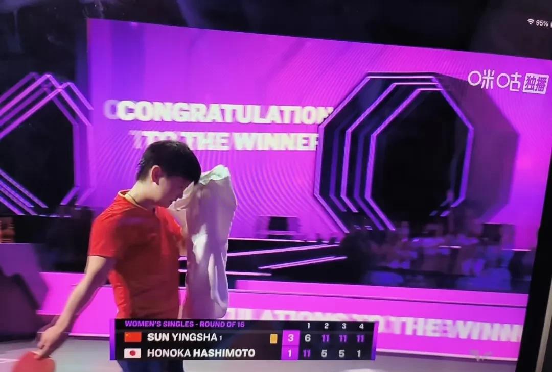 莎莎打了桥本一个10:0,谁还不服。 莎莎赢下比赛,看芦璐笑的多开心,屏幕前的我们也很开心,就是莎莎今天打桥本确实累,然后她把桥本打的满场跑,桥本后面也累了,跑不起来了。第四局莎莎打了桥本一个10:0的开局,虽然桥本也叫了暂停,看到周雨说10:0后的那一球莎莎不好意思了,没下死手,在日本的主场,莎莎没打桥本11:0,也是给足了桥本面子。 昨天莎莎就说很期待今天的比赛,所以今天虽然打的累,但是莎莎很享受这场比赛,打的也兴奋,莎莎就喜欢拆局,越拆越兴奋。莎莎是真的厉害,这就是世界第一孙颖莎的能力,这就是正手的实力。 赛后采访时,看到莎莎的头发都乱了,把孩子累的都顾不上整理头发了。今天的比赛,马琳也很激动,莎莎真的是不负众望,别人打不了的她都能解题,这下桥本也被打服了。除了伊藤和张本美和,莎莎是终结了桥本对外战41连胜,对国乒11连胜的战绩,还是莎莎厉害!接下来好好休息,明天莎莎还要迎战大藤沙月!