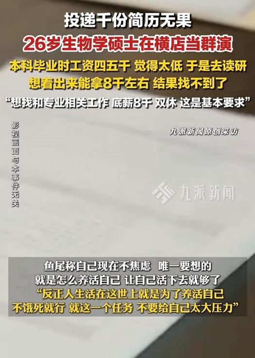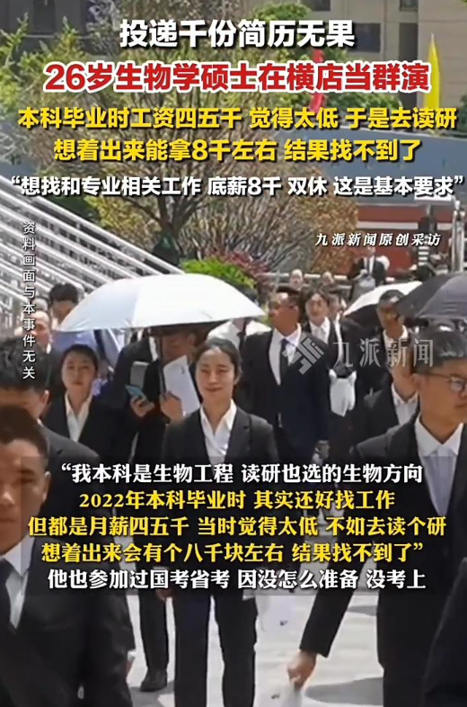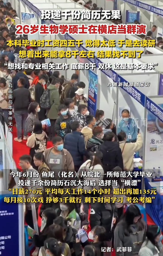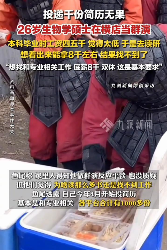 值得深思!近日据媒体报道,26岁硕士投递千份简历无果不得不去横店当群演 !