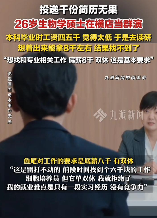 当事人 :本科毕业时工资四五千,觉得太低,于是去读研,想着出来能拿8千左右,结果找不到了。