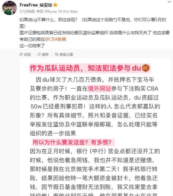 徐杰在去咪咕解说前网上就已经出现微博爆料他的丑闻,所以徐杰在解说比赛时也是心情忐忑,一副愁眉不展的样子,解说时也没有什么好的表现,甚至都不觉得他在解说。 徐杰之前已经被多个女子在网上爆料他脚踩多只船,出轨、劈腿、打胎等各种丑闻,常在河边走怎能不湿鞋,终于徐杰这回遇见硬茬了,这个爆料女子将徐杰赌球的证据传给了中国篮协和CBA公司,这个可就厉害了,毕竟之前的徐杰各种出轨打胎丑闻顶多算私德不好,但赌球这个事可就是违法的事情了,如果被调查属实,那么徐杰的职业生涯将就此画上句号。甚至都有进牢狱踩缝纫机的可能。你们觉得这次徐杰会被冤枉吗?