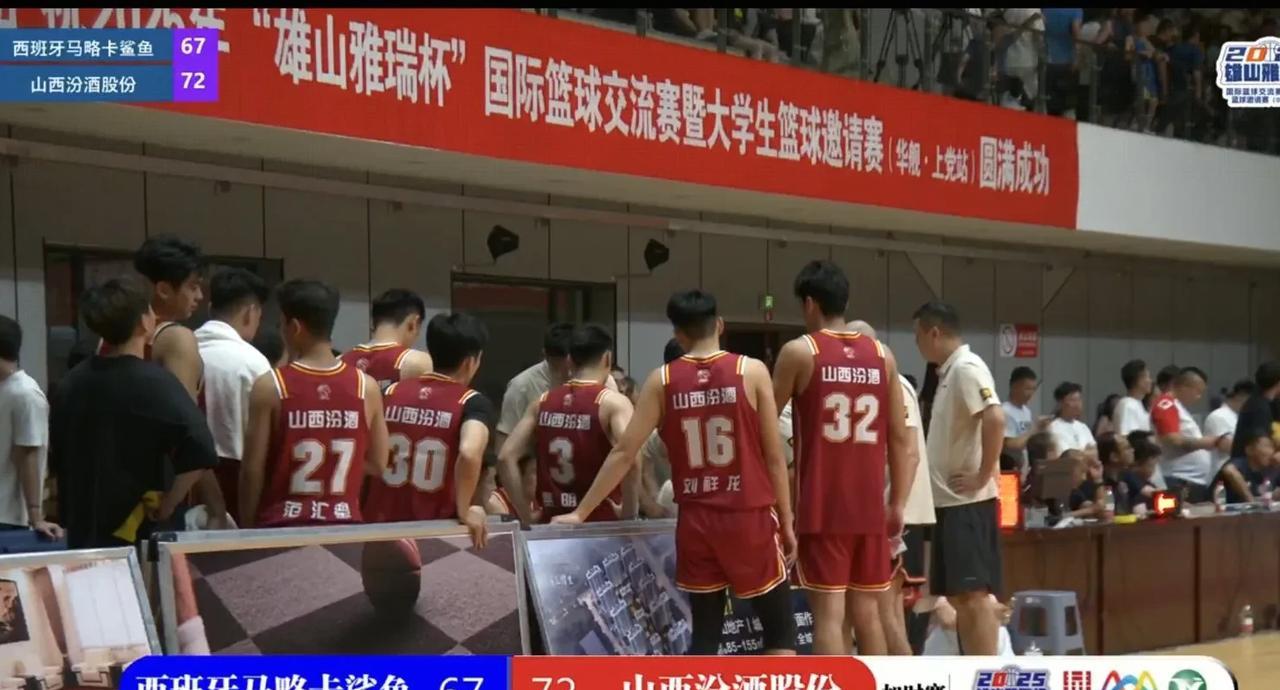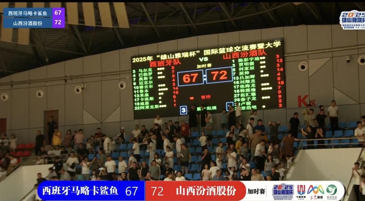 加时赛胜出!山西汾酒男篮72比67战胜西班牙马略卡鲨鱼队,拿到2025年“雄山雅瑞杯”国际交流赛暨大学生邀请赛的第二场胜利。 本场比赛,双方均派出了主力球员出战,特别是双方常规时间打平后,加时赛山西汾酒男篮依然保持场上的攻防强度,原帅、贾明儒、焦海龙、韩霈瑜、陈鹏雨迪最强阵容悉数留在场上战斗到终场,可见球队对本场比赛的重视程度。 在加时赛来到最后50秒时,西班牙队罚中篮后,山西汾酒男篮仅68比67领先对手1分。在接下来的进攻中,贾明儒外线出手打铁,内线焦海龙拿到篮板二次进攻打进,西班牙抢三分进攻不中,焦海龙抢到后场篮板,一攻一防,体系出了焦海龙的经验和作用。最后时刻,西班牙队犯规,送贾明儒上罚球线,贾明儒两罚全中,72比67锁定胜利。本场比赛,练兵效果鲜活,新人成色有几,球队明明白白。 本场比赛,陈鹏雨迪3分,贾明儒13分,何家辰3分,原帅14分,吕加辉4分,焦海龙15分,韩霈瑜7分,秦子龙9分,卢骏2分,常浩然2分。刘翔龙、范汇鎏没有分数入账。