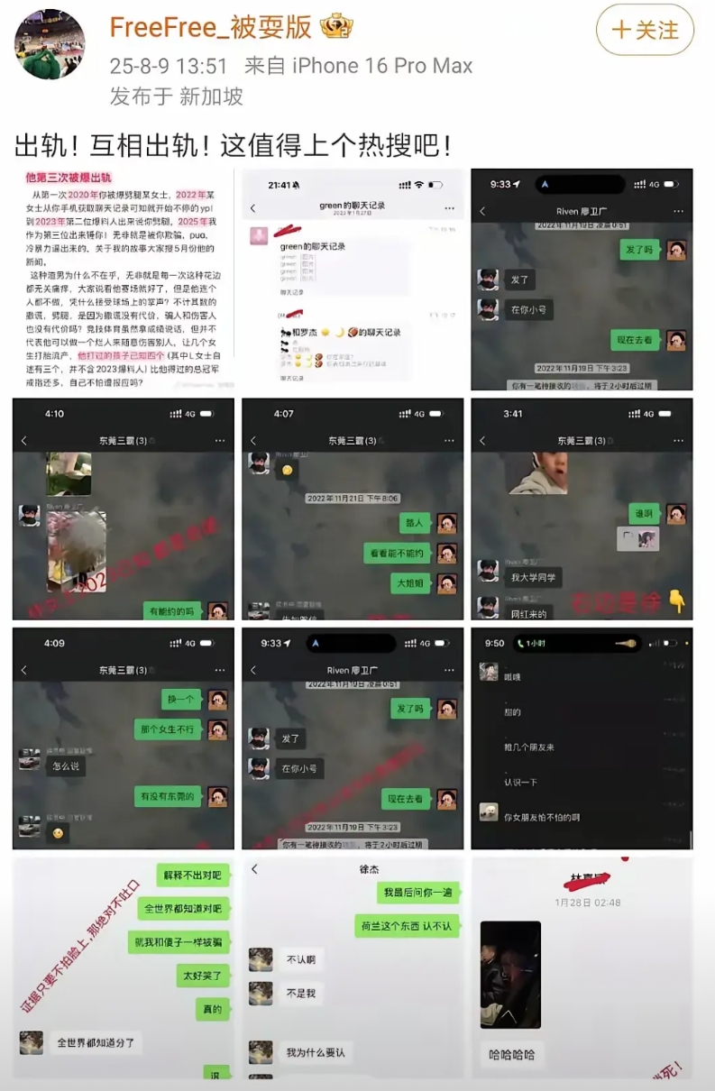 博罗新星徐杰可能要出事了,一则狗血出轨爆料有点出乎意料,如果没有可靠的证据,不可