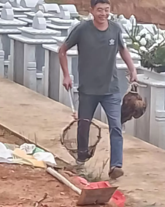 “太缺德了”有一名男子跟家人到墓园祭拜,看到一名灰衣男子鬼鬼祟祟的在墓地里走动,走着走着,灰衣男子在其中的一个墓地停留了下来,最后直接伸手在一个墓地里掏东西。