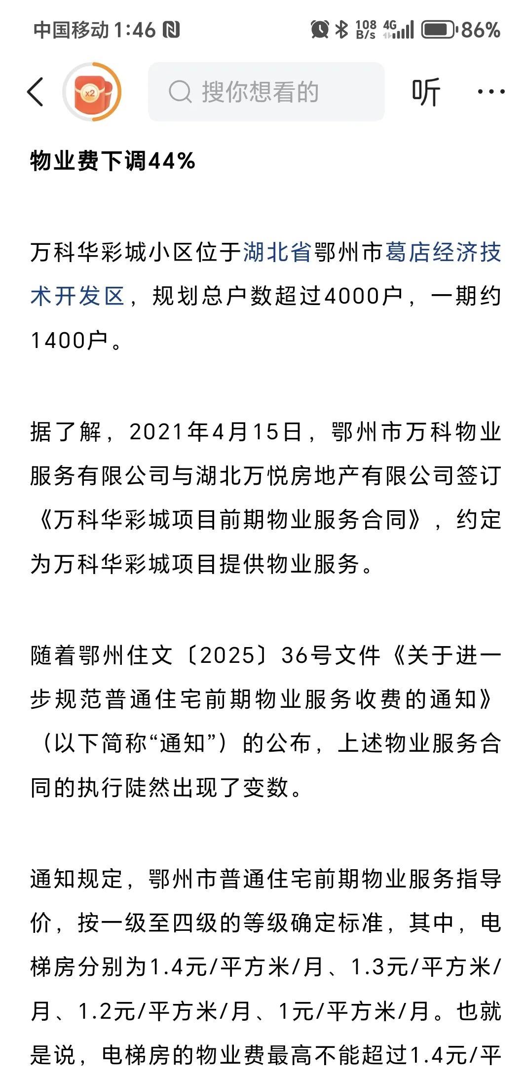 物业费下调近四成,物业公司发出退场公告。 湖北省鄂州市,有关部门制定了物业费的收