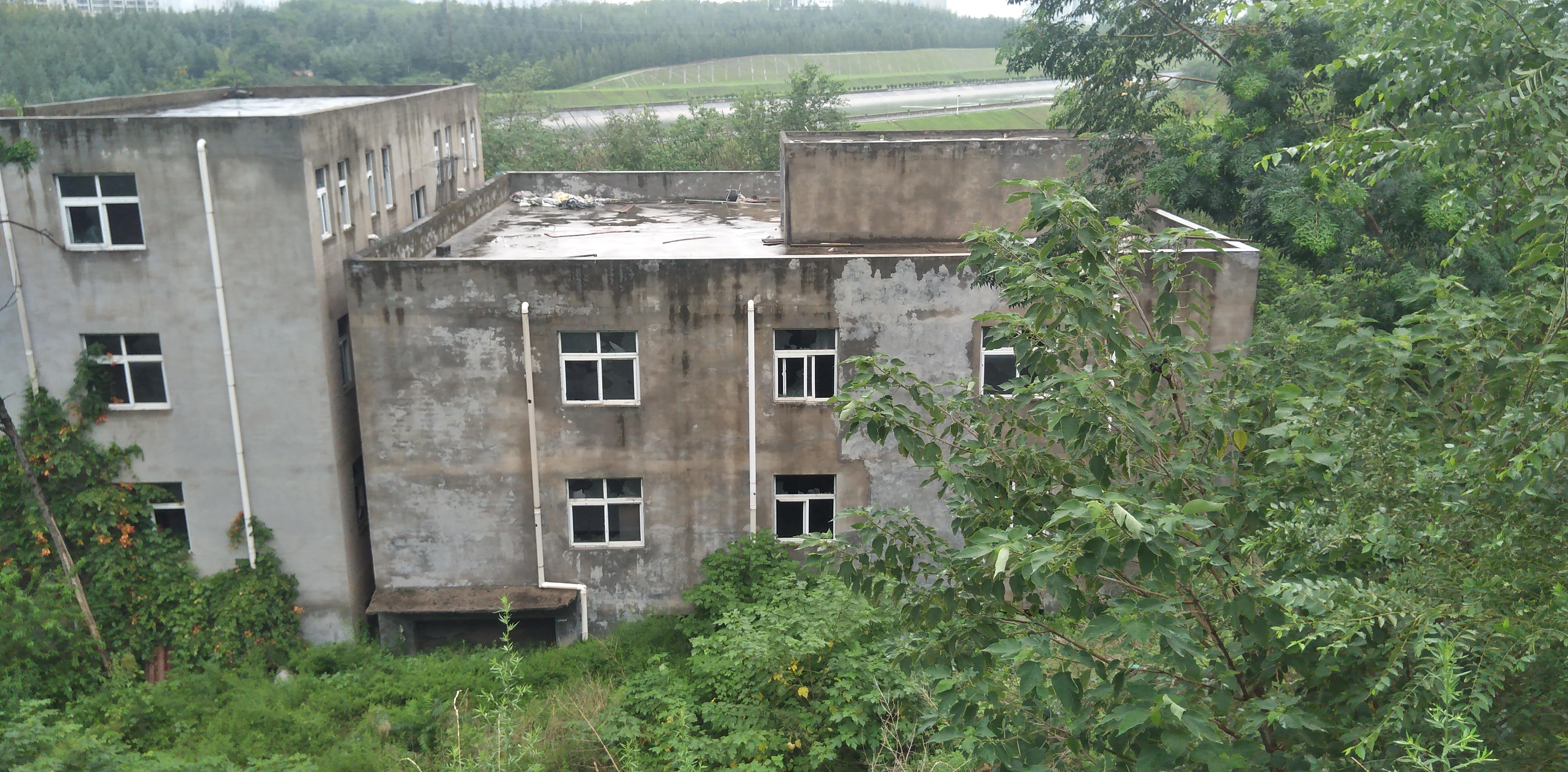 在郑州西三环陇海路南水北调大运河东北角,有一处搁置了多年的三层楼房,这是拆迁遗留下的村民住宅,由于年久失修,房子已经破烂不堪,周围长满了树木杂草,不仔细看很难发现。