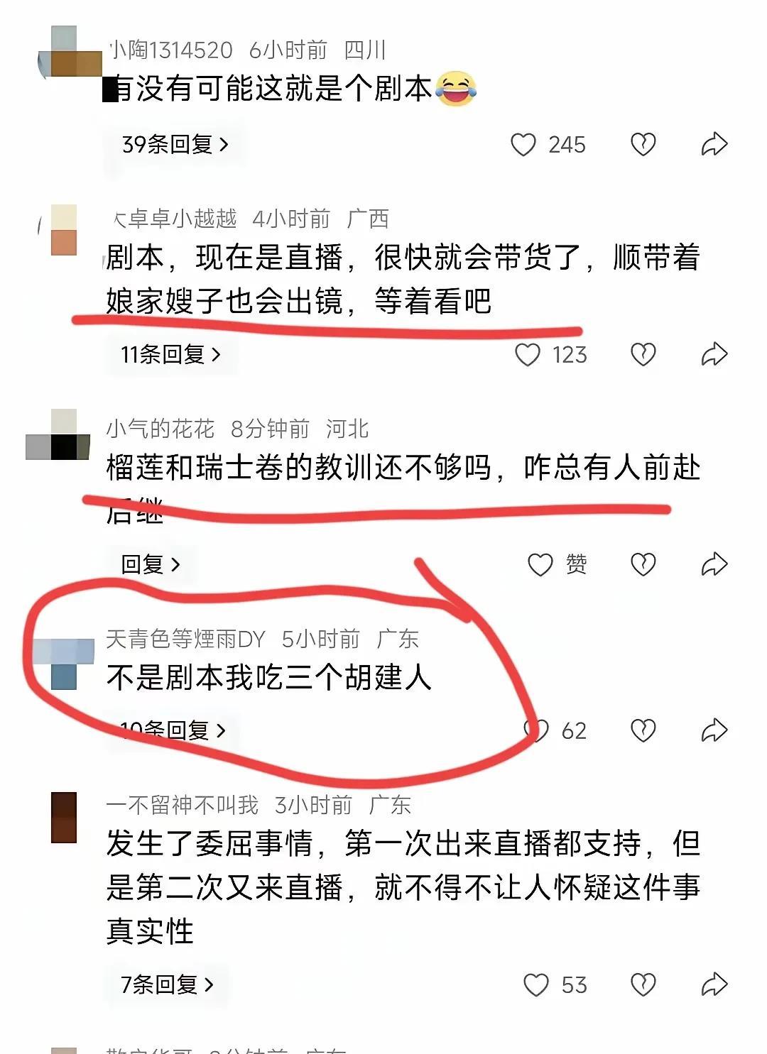 鸡蛋男事件最大的受害者出现了 不是远嫁的姑娘 也不是鸡蛋男本人 更不是四个孩子 胡建人 鸡蛋男事件女主第一时间直播了 网友推测整件事都是剧本 有网友甚至打赌 不是剧本就吃三个胡建人 福建网友:又我?
