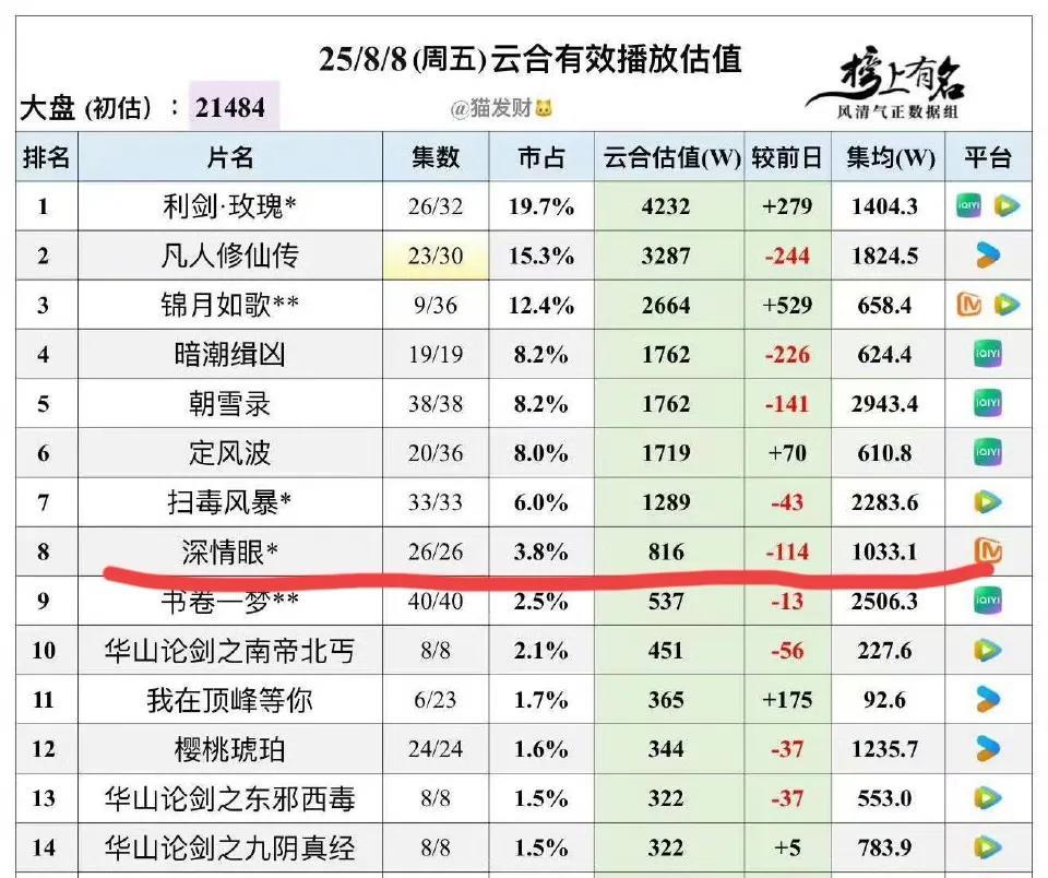 《深情眼》集均破1000万,马上就要超过《南风知我意》,以后真的不要再说她拖后腿