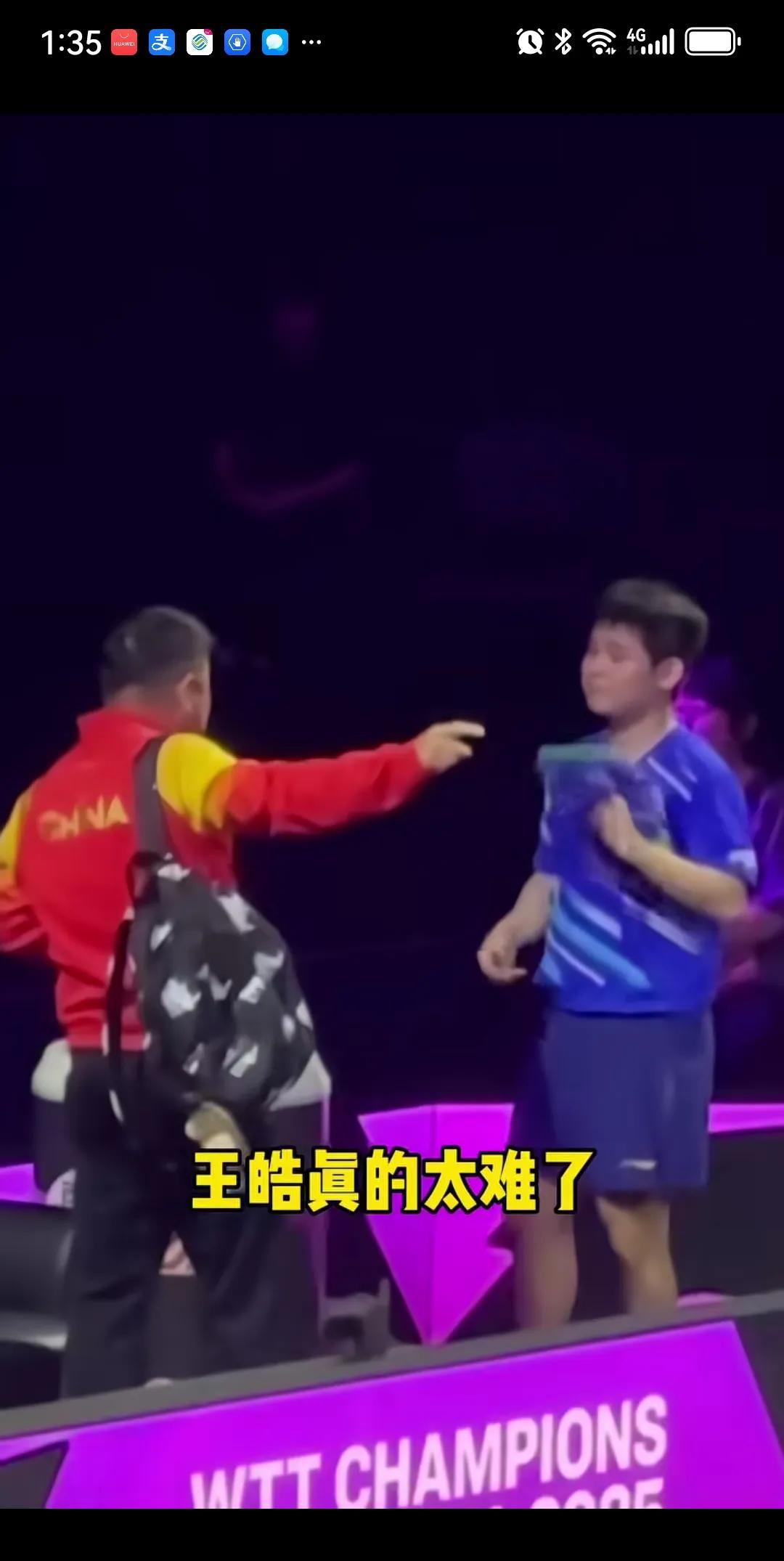 林诗栋2:3负于邱党无缘八强之后,教练王浩非常失望,低头沉默,又一次流露出恨小石