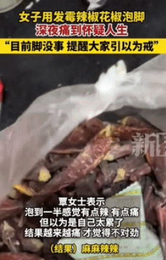 “是个狠人!”广西一女子发现家里的辣椒发霉后,就用辣椒煮了热水泡脚,不料,泡到一