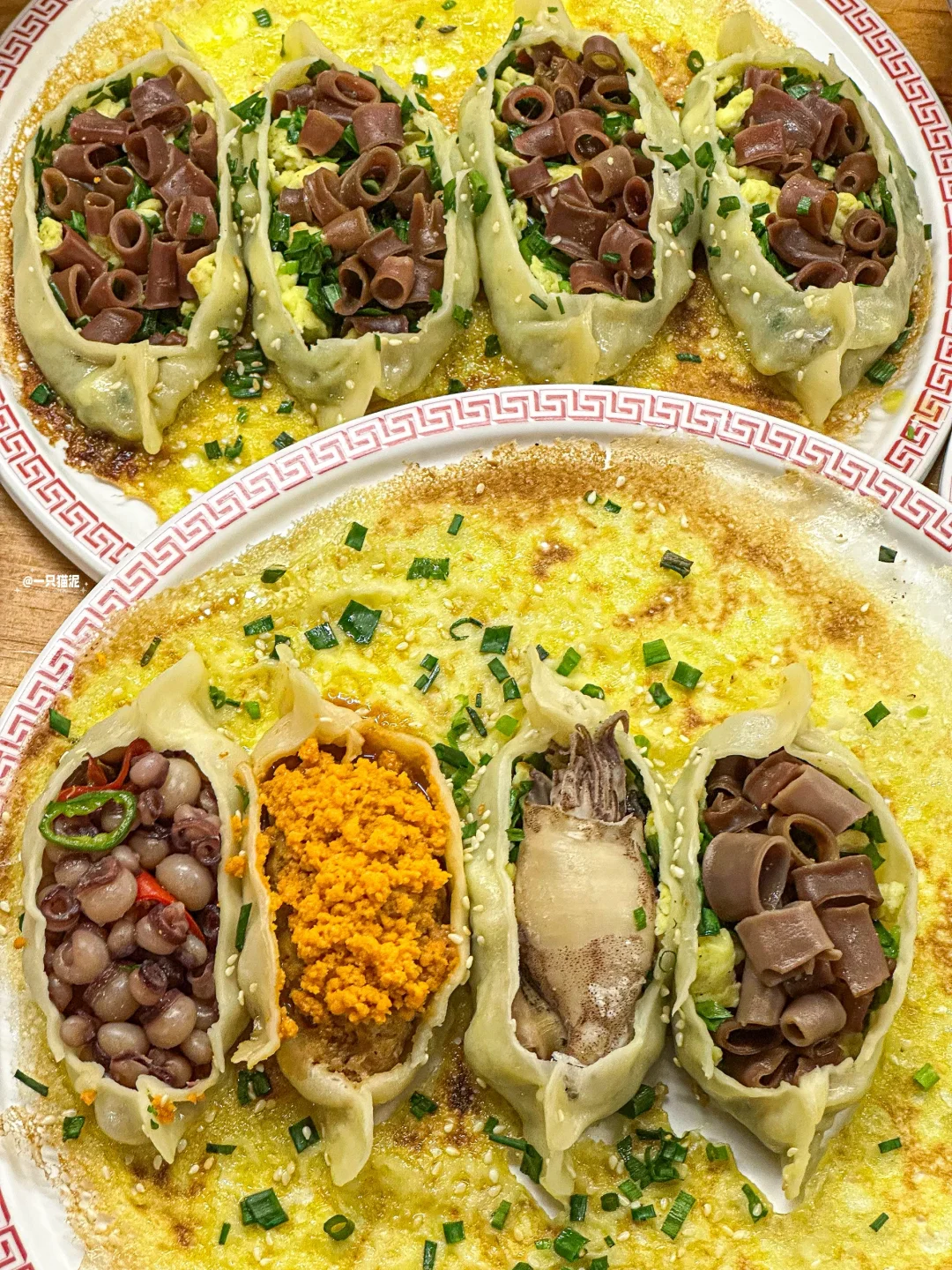 海鲜煎饺🥟,酥脆内馅丰富,现包现煎一口biu汁!