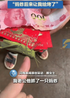 “这下后悔了吧!”湖南永州,一夫妻抓了只蚂蚱,随手放在了汽车的扶手箱里,结果下车时,忘记带回家了,蚂蚱在车上逗留了一夜,男子想起来,准备拿回家时,发现对方竟然把百元大钞啃食了,而妻子接下来的举动,让人意外,网友:蚂蚱也知道钱是好东西! 据闪电新闻8月8日消息,夫妻俩游玩期间,看到有蚂蚱后,男子顿时来了兴趣,两人手里恰好有水瓶,把水喝完后,男子果断出手,把蚂蚱放在了空瓶里。 为让蚂蚱自由呼吸,男子特意给瓶子钻了洞,蚂蚱活动空间就这么少,这洞又不足以让它逃离,两人驾车回家期间,把蚂蚱放在箱子,想着带回家再继续逗它。 结果两人全忘了,等再次看到蚂蚱时,突然发现旁边的红包破损了,妻子赶忙把红包拆开,100元也没能幸免,这钱肯定是花不出去了,女子气不打一处来。 不过她没直接找蚂蚱算账,而是找到了银行,她将事情的前因后果给工作人员讲了一遍,但人家不信,幸好女子拍有视频,证据摆放在面前,工作人员同意给她换钱。 钱重新回到自己手里的感觉可太好了,但蚂蚱绝对不能再留了,万一要是再霍霍其他东西怎么办,女子毫不犹豫把蚂蚱穿在木棍上,烤了吃,既然蚂蚱无情,就别怪女子无义,真是一个要钱,一个要命。 对于这件事情,大家有什么看法?