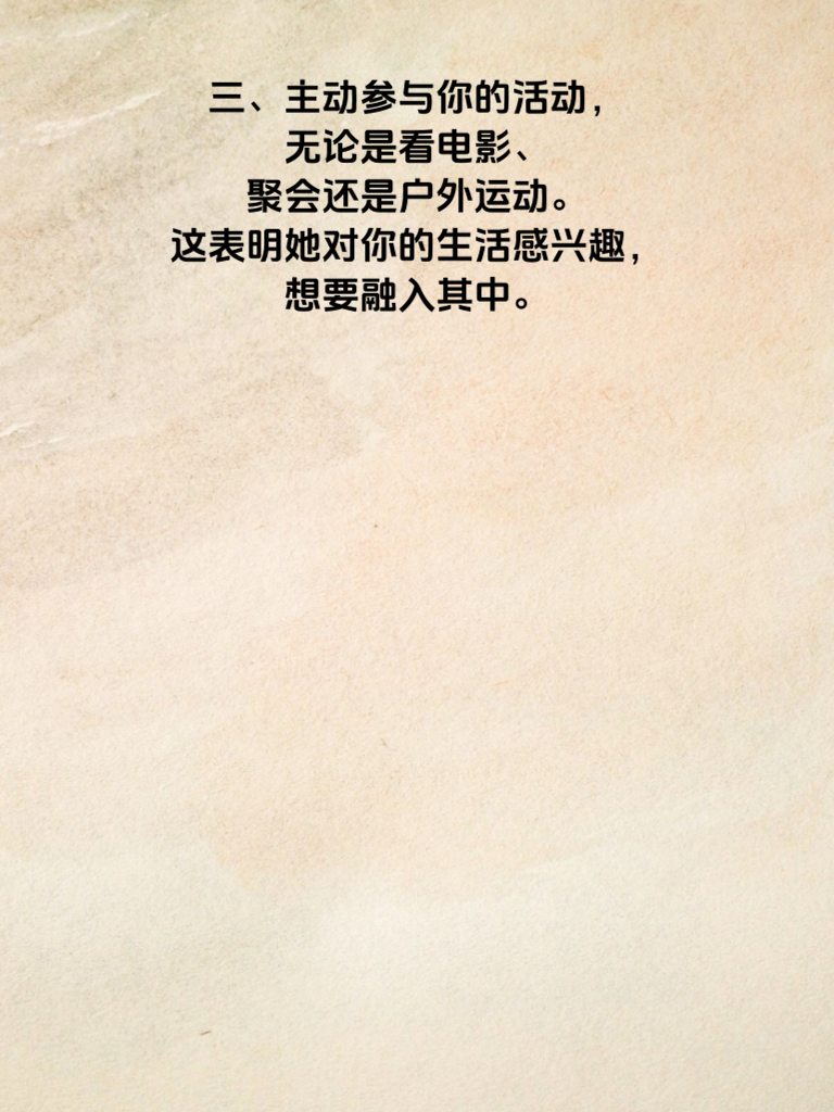 一、女生的心事,总是藏在一些微妙的信号里。当她开始主动靠近你,那背后可能有着多种含义。 二、她会频繁地找你聊天,分享生活中的点滴琐事。这或许是她渴望与你建立更紧密的联系,想让你深入了解她。 三、主动参与你的活动,无论是看电影、聚会还是户外运动。这表明她对你的生活感兴趣,想要融入其中。 四、她可能会对你的兴趣爱好表现出好奇,主动询问相关问题,甚至尝试去了解和参与。这是她努力拉近与你距离的表现。 五、在你面前,她会展现出不一样的一面,更真实、更放松。这意味着她信任你,并且希望你能看到她的全部。 六、主动关心你的生活,比如提醒你添衣、注意休息。这是她内心在乎你的体现。 七、当女生主动靠近时,男生要敏锐地捕捉这些信号,积极回应,抓住机会进一步发展感情。
