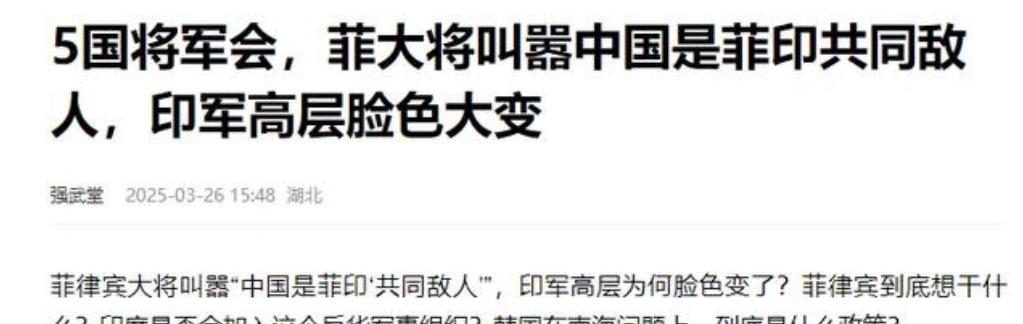 菲参谋长打胡乱说,应该是菲律宾是我们和印度共同的敌人才正确。