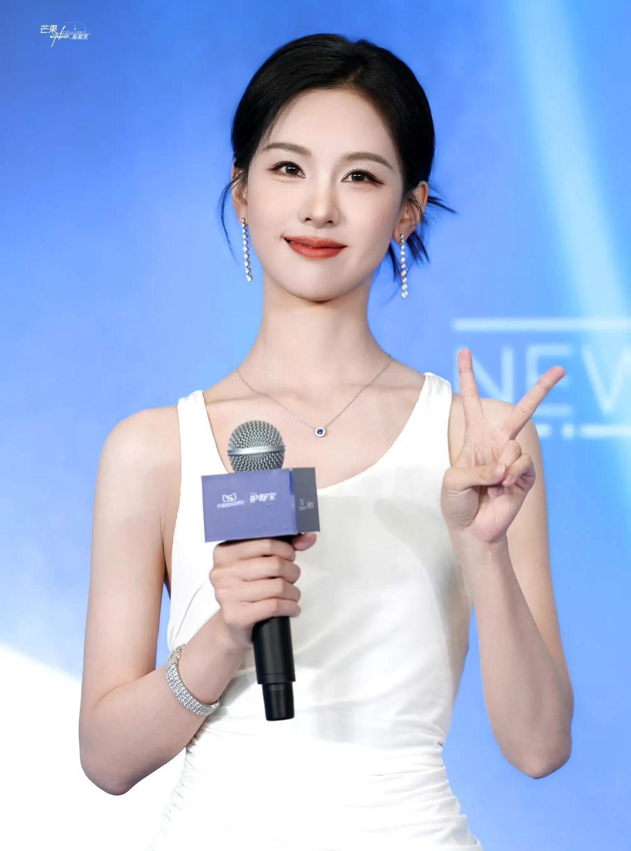 #陈都灵#素白褶皱裙勾勒身体线条,钻饰在光影里流转。墨镜添飒爽,比耶藏清甜,举手投足间,将纯净与灵动揉成同一番风景 。