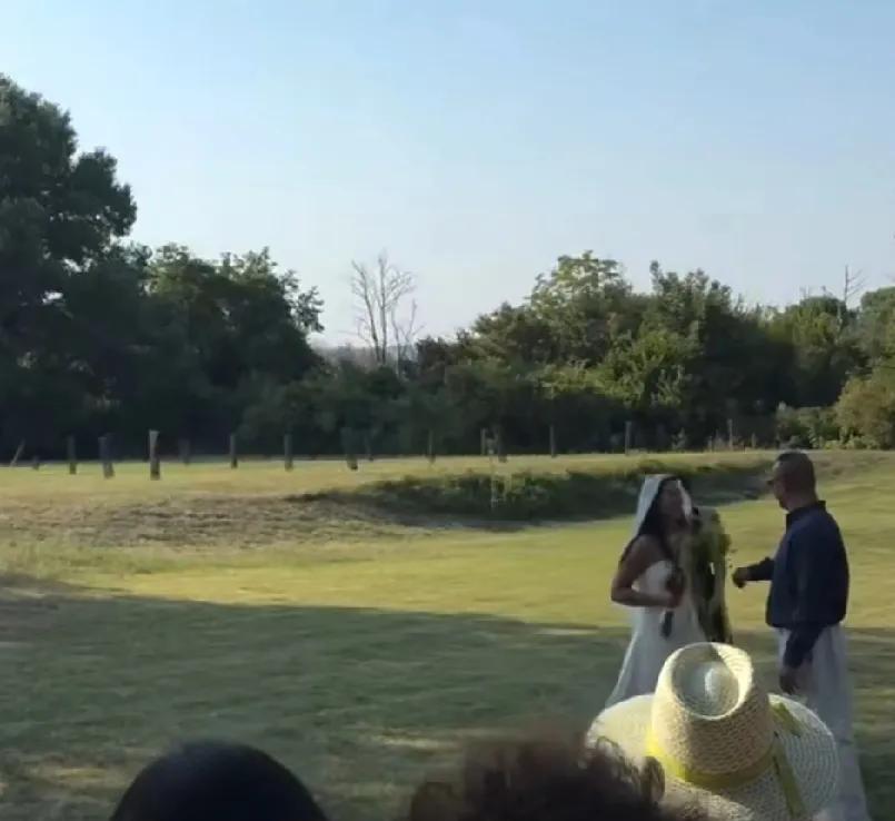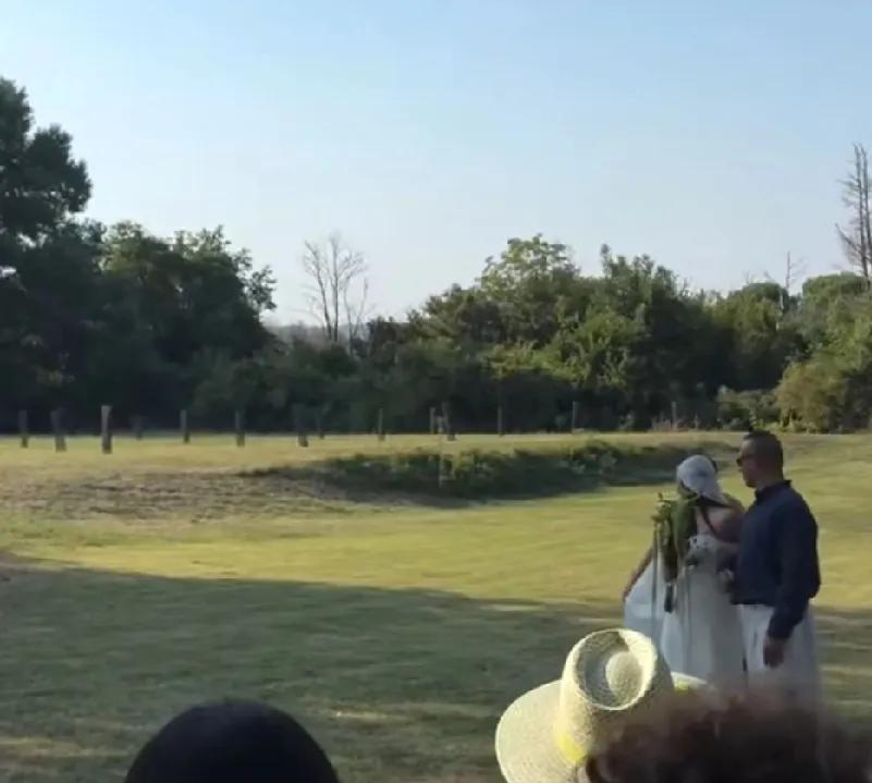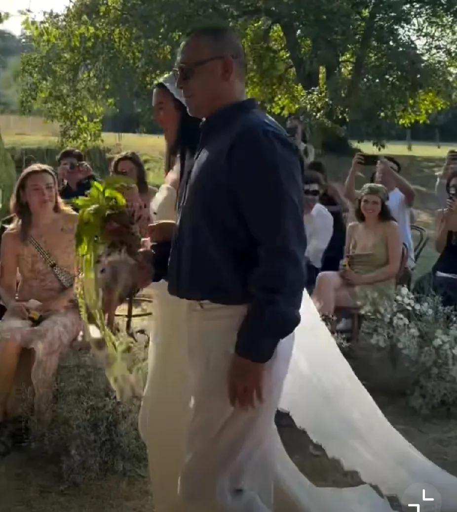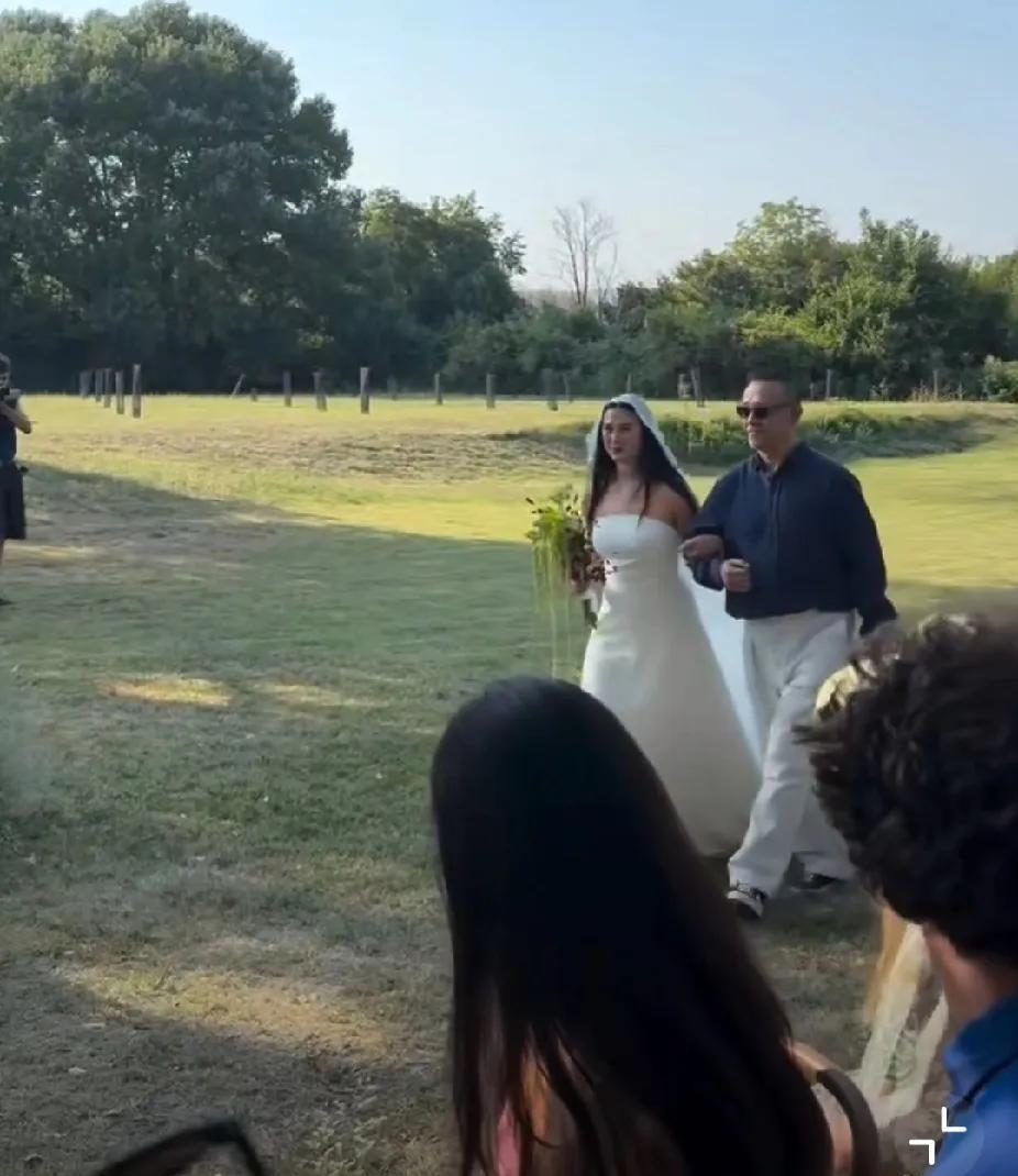 当地时间8日,姜文女儿姜一郎在法国办婚礼。她身着抹胸白纱挽父亲入场,姜文戴墨镜,