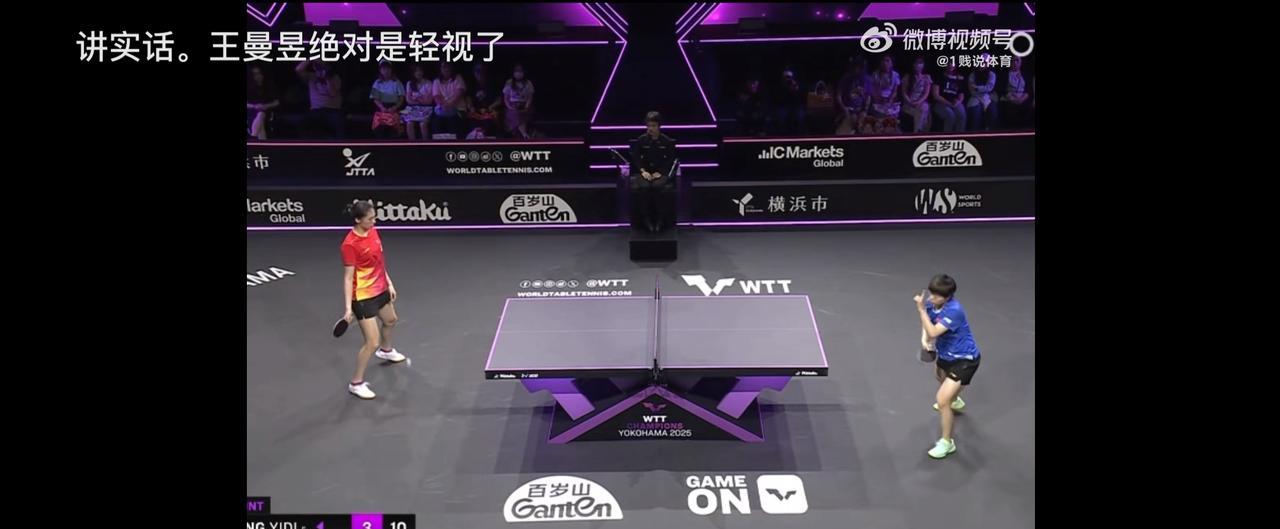 在陈熠与王艺迪的这场对战里,没看出陈熠有特别强的控场表现。两人中远台的对抗打得挺激烈,王艺迪有几个球擦边,不过这对比赛大局没啥影响。这么一对比,感觉昨天王曼昱那场确实是失误不少。最终王艺迪4 - 2赢下比赛成功晋级下一轮,也得恭喜她啦~#陈熠vs王艺迪##王艺迪4比2陈熠##王艺迪晋级横滨赛四强#